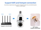 1.Dual-lens Design, Watch 2 Direction at the Same Time: This Pan Tilt Wi-Fi bulb camera can provide you with a clear 1080P view at any time, day or night. The fixed bullet camera lens allows you to keep an eye on a specific angle, and the pan and tilt lens allows you to cover 360 monitoring at the same time! 2. Motion Detection, Motion Tracking, Siren Audio Alarm: It supports motion detection, auto tracking, will send siren audio alarm and light alarm when motion is triggered, and the tilt of the pan lens will return to the preset direction after tracking! You'll never have to worry about the lens turning in the unimportant direction! 3. 2-in-1 Security Camera & Flood Light: It's a 2-in-1 security camera with 2 camera lenses and 4 built-in flood lights! And what makes it more amazing is, the built-in flood light bracket automatically turn on when someone passes by during the dark night! 4. Easy Wi-Fi Installation and Setup via Bluetooth: It's as easy as replacing a bulb to screw this camera to an E27 light socket, no drilling, no drilling, no wires, please follow the manual step by step, it takes one minute to do wifi setup via bluetooth. So it makes this camera easy to install for almost all users! 5. Anytime, Anywhere Remote Viewing: This home camera supports remote viewing, you can keep an eye on what matters most anywhere and anytime! Micro SD card slot (without card) and cloud are available and optional, even you don't subscribe to the cloud, the alarm also works. Product parameter: Pixel: 6MP(3mp+3mp) Lens (mm):4 mm Color: white Sensor: CMOS Video compression format: H.264 Connectivity: wireless TF card: 128g TF card (not included) Viewing angle: 355 (level)/90 (vertical) Network cable protocol: Wi-Fi/802.11/b/g Night mode: Infrared night vision + full color LED Compatible mobile systems: Android/iOS Package included: 1/2/3/4 * bulb security camera 1/2/3/4 * E27 socket adapter 1/2/3/4 * Instruction On Feb 28, 2025 at 20:20:25 PST, seller added the following information: