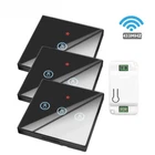 the controller product parameters 1, working voltage: AC85-240V 60HZ/50HZ 2, working frequency: 433.92MHZ 3, the total load power: <1000W 4, receiving sensitivity: -108dBM 5, working method: wireless remote control 6, coding method: learning code 7, modulation method: ASK 8, working temperature: -10 deg C ~ +70 deg C 9, size: 72 * 38 * 26 (mm) 10.The controller has a memory function, remembers the state before the power was turned off Wireless switch parameters: 1.HD tempered glass 2, working voltage: DC 3V 3, working frequency: 433.92MHZ 4. Transmitting power: <10mW 5. Remote control distance: <100 meters (indoor distance) 6, working method: wireless remote control 7, coding method: learning code 8, modulation method: ASK 9, working temperature: -10 deg C ~ +70 deg C 10, size: 86 * 86 * (mm) 11.standard battery,Cr2032 battery, ((Does not contain battery)) Pairing signal: 1. Press and hold the controller for 3 seconds to enter the code matching mode (the code indicator light flashes 5 times). At this time, press the wireless switch 2 times and wait for 2 seconds. The code is successful (the default is always on); clear the signal Press and hold the controller for 10 seconds to clear the code (the code indicator flashes 10 times); Avoid Darkness and Save Energy Turn the lights on in advance to avoid darkness. Turn off the lights after leaving, save energy More convenient and smarter We recommend multiple products to buy, more convenient at home Working principle Input and output intermediate access controller. Wireless switch control current is turned off and on at 433 MHz Remote control distance 100m Controlling 1 lamp from multiple places Drawer box design Cr2032 Battery , easy to replace the battery The service life is about 12 months. Life and frequency of use are related. Time may be longer (Does not contain battery) Luminous fluorescent strip Middle of the night, do not worry about finding the switch Drop resistance design Protective housing,four-corner arc transition, buffer protection Large panel It is more convenient because it is bigger Passed CE, fcc ,RoHs certification, note: 1. professional electrician should operate this product. When powering on, do not touch the antenna. Install this product without opening the protective cover 2.This controller will not be available if a wall switch with RF function is installed at home. Otherwise the function will be affected. Just need to buy a separate wireless switch 3. Do not operate with power. Turn off the power supply and operate it. If the test is confirmed to be correct, use it under the guidance of a professional electrician. 4. When the voltage of the remote control is insufficient, please change the battery in time (the remote control distance becomes closer when the remote control battery voltage is insufficient). 5. When using wireless electronic products, care should be taken to avoid metal masks, large electronic devices, electromagnetic fields, etc., which have strong interference sources, to avoid remote control and short receiving distance or to work normally. 6. Do not use this electronic product abnormally. Abnormal use will reduce product performance and longevity. In severe cases, damage to the product will also pose a safety hazard.