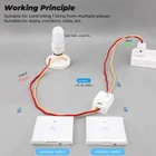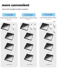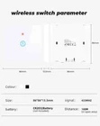 the controller product parameters 1, working voltage: AC85-240V 60HZ/50HZ 2, working frequency: 433.92MHZ 3, the total load power: <1000W 4, receiving sensitivity: -108dBM 5, working method: wireless remote control 6, coding method: learning code 7, modulation method: ASK 8, working temperature: -10 deg C ~ +70 deg C 9, size: 72 * 38 * 26 (mm) 10.The controller has a memory function, remembers the state before the power was turned off Wireless switch parameters: 1.HD tempered glass 2, working voltage: DC 3V 3, working frequency: 433.92MHZ 4. Transmitting power: <10mW 5. Remote control distance: <100 meters (indoor distance) 6, working method: wireless remote control 7, coding method: learning code 8, modulation method: ASK 9, working temperature: -10 deg C ~ +70 deg C 10, size: 86 * 86 * (mm) 11.standard battery,Cr2032 battery, ((Does not contain battery)) Pairing signal: 1. Press and hold the controller for 3 seconds to enter the code matching mode (the code indicator light flashes 5 times). At this time, press the wireless switch 2 times and wait for 2 seconds. The code is successful (the default is always on); clear the signal Press and hold the controller for 10 seconds to clear the code (the code indicator flashes 10 times); Avoid Darkness and Save Energy Turn the lights on in advance to avoid darkness. Turn off the lights after leaving, save energy More convenient and smarter We recommend multiple products to buy, more convenient at home Working principle Input and output intermediate access controller. Wireless switch control current is turned off and on at 433 MHz Remote control distance 100m Controlling 1 lamp from multiple places Drawer box design Cr2032 Battery , easy to replace the battery The service life is about 12 months. Life and frequency of use are related. Time may be longer (Does not contain battery) Luminous fluorescent strip Middle of the night, do not worry about finding the switch Drop resistance design Protective housing,four-corner arc transition, buffer protection Large panel It is more convenient because it is bigger Passed CE, fcc ,RoHs certification, note: 1. professional electrician should operate this product. When powering on, do not touch the antenna. Install this product without opening the protective cover 2.This controller will not be available if a wall switch with RF function is installed at home. Otherwise the function will be affected. Just need to buy a separate wireless switch 3. Do not operate with power. Turn off the power supply and operate it. If the test is confirmed to be correct, use it under the guidance of a professional electrician. 4. When the voltage of the remote control is insufficient, please change the battery in time (the remote control distance becomes closer when the remote control battery voltage is insufficient). 5. When using wireless electronic products, care should be taken to avoid metal masks, large electronic devices, electromagnetic fields, etc., which have strong interference sources, to avoid remote control and short receiving distance or to work normally. 6. Do not use this electronic product abnormally. Abnormal use will reduce product performance and longevity. In severe cases, damage to the product will also pose a safety hazard.