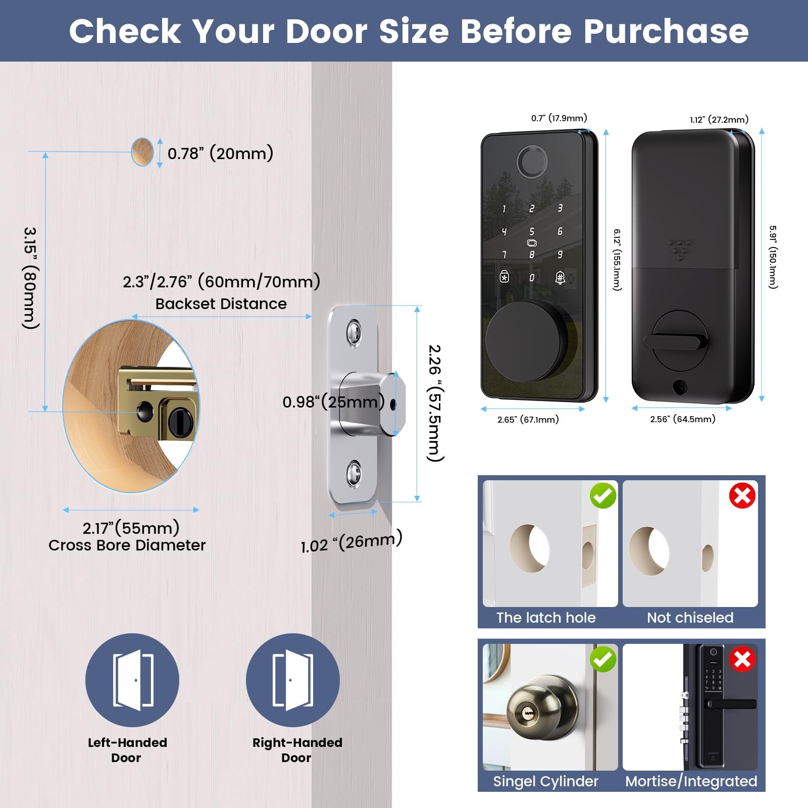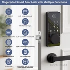 5 in 1 Smart Lock:traditional deadlock with 2 mechinal keys/ digital electronic door lock with keypad set offer 100 code/fingerprint door lock/Fob smart lock deadbolt /Bluetooth Smart deadbolt lock with app control/Remotely Control with Tuya Gateway (not included) Home Security: The intelligent lock features auto-lock, one-touch locking, single code mode, combinational code mode,wrong entry limit and low battery alert, made with an anti-peeping and anti-hacking touchscreen keypad, keeping your home secure.Low power alert and Emergency charging port keeps you out of power trouble.(come with 4 AA batteries,use about 6 month ) Free App & Web Portal Control: You can control the smart deadbolt lock via smartphone,(Tuya Gateway not included) remotely generate pin code and grant access, manage users, and view records in the app and website management system. The Tuya App/Smart Life App & Web is free and can be used forever. Intelligent Management: With 100 fingerprints and 100 multiple user codes, you can remotely generate and share one-time, permanent, scheduled, and recurring code with your house sitters and guests. Ideal for house, apartment, office, Airbnb and hotel. [Exceptional Customer Support and Warranty] Backed by ’s 24/7 online customer service, a 1-year replacement warranty, and a 30-day no-questions-asked return policy, your satisfaction and security are our top priorities. Whether you need a reliable deadbolt lock or advanced keyless deadbolt, we’ve got you covered.