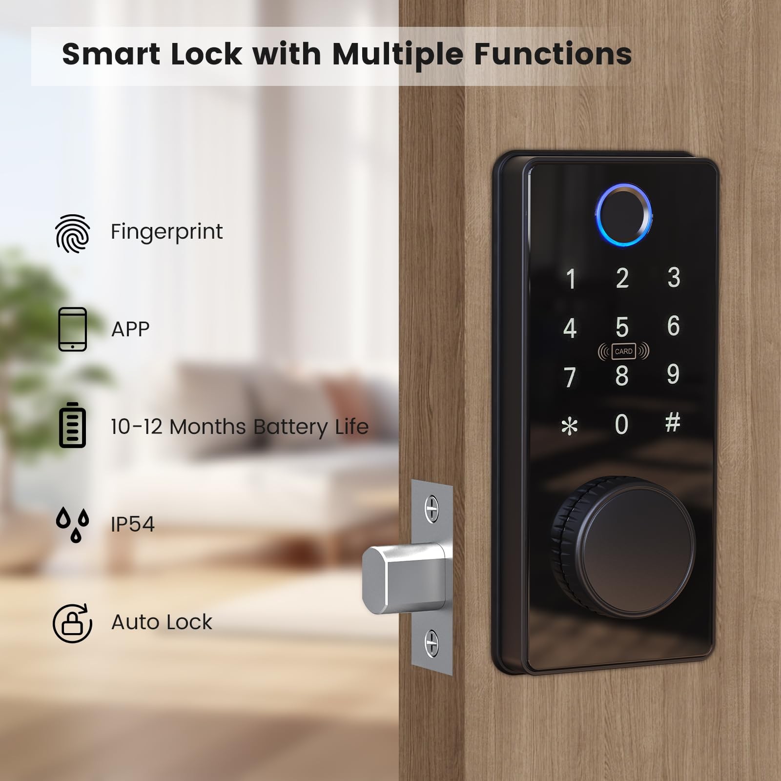 This smart lock is a game-changer for home security and convenience! The fingerprint scanner is super fast, and I love having multiple ways to unlock the door—perfect for when guests or family need access. The app control is handy, battery life lasts forever, and the waterproof design gives peace of mind. No more fumbling for keys—just effortless keyless entry that feels futuristic! Highly recommend for anyone wanting to upgrade their front door.