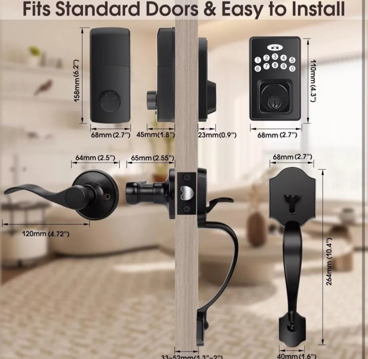 Upgrade your home security with the Tinewa Black Electronic Smart Keypad Door Deadbolt. This keyless entry lock offers a sleek matte finish and a reversible handle, making it a perfect fit for your front door. Its electronic features allow for easy access and management of entry permissions, while the black color adds a modern touch to your home's exterior. The Tinewa Electronic Door Lock is suitable for both home and commercial use, providing a safe and convenient way to secure your space. With its durable construction and advanced security features, you can have peace of mind knowing your property is protected. Get your hands on this top-of-the-line lock today and enjoy the benefits of enhanced security. This is an open box item BRAND NEW! All parts accounted for.