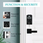Security and Durability: Door lock with Handles is ANSI Grade 3 Certified. Made of durable alloy and powered by 4 AA batteries, providing over 1 year of use. IP54 weatherproof. [3 in 1] Unlock:Passwords+One-time Codes+Keys to unlock your door lock. Combination Door Lock:Our fingerprints Digital Smart Code Door Lock set includes 2 passage door levers and a keypad deadbolt lock. Our smart door lock featured with anti-peeping password, mute mode, vacation mode, backlit keypad to apply your needs. Vacation Mode When you're away on vacation, you can turn on vacation mode.It cannot be unlocked with a user code or one-time codes, and it will sound an alarm if someone tries to unlock it from the outside and inside. Mute Mode You can turn the beep on or off.If you have kids and elderly, you can mute them to provide a noise-free environment for them. Our smart door lock No Wi-Fi /App Required, no need to worry about mobile phone connection or network problems. Very friendly for children and the elderly. Keypad Front Door Lock Set : Our digital door lock set includes 2 passage door handles and a keypad deadbolt lock. This smart door lock featured with low battery indicator, backlit keypad,mute mode, vacation mode to apply your different needs Keyless Entry: Keypad lock supports multiple ways to access: 20 user codes, one- time code, 2 backup keys. One-Time Code:Our door lock system allows for one-time access codes to be set for temporary visitors. it will automatically deleted after use Auto-Lock & One-touch Lock: Our door lock system features automatic locking and a one-touch auto-lock option. Set up door lock set to 'auto lock' in 10-99 seconds,or press and hold any key for 2 seconds to "One touch Lock" from outside.perfect for getting in/out in a hurry Security Protection:Anti-peeping password which add random numbers before and after the real password to protect from prying eyes. and Anti-cracking Wrong Password Entry Limit 10 times, keypad lockout 3 minutes, keep your home security at all times Low Battery Alert: This smart door lock featured with low battery indicator, when the battery below 15%, flashing red light will remind you to replace batteries,which last up to 1 year Easy to install:Our door lock system can be easily installed with just a screwdriver in a few minutes(all necessary hardware components included).The front door lock set fits standard-size door hole (2-1/8-inch / 54mm), Fit standard door thickness of 1-3/8"to 1-3/4"(35mm-45mm)