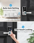 Smart Door Lock with Handle: Fingerprint + Passcode + App control + IC fobs + Mechanical keys + Web portal + Alexa voice control(G2 Gateway Required). APP Control & Remote Access: Using free DDlock app, Set up customized access permissions for family, friends, and guests, and monitor access records for added peace of mind. Durable and Waterproof: keypad door lock with a sturdy aluminium alloy body, long Battery Life, low battery alert function, 4pcs AA batteries(not included) can last for more than 1 Year. The IP54 weatherproof rating ensures that come rain or shine, your front door is protected. Auto Lock & One-touch Locking: One-touch locking allows you to instantly lock your door by simply touching the # button on your keypad for 2 seconds. You could personalize your auto lock time from 1s-900s. Security Deadbolt: Electronic door lock offers a range of features to enhance convenience and security. In Passage Mode, the lock will stay unlocked. The built-in anti-peeping touchscreen keypad allows you to add random numbers before and after the real password to protect from prying eyes. The anti-hacking and privacy mode keeps your home secure.