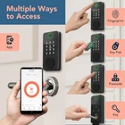 【KEYLESS ENTRY]】You can unlock this keyless entry door lock with your password, fingerprint, or APP of this smart door lock; No more digging keys out of your wallet or pocket beside the knockers with our smart locks for front door 【SMART LOCK】Within deadbolt lock Bluetooth range, use your phone to explore the electronic door lock to unlock, share access, monitor status, view guest logs and more; Gateway required for remote control this keypad deadbolt 【SMART HOME DEVICE】Auto-locking options of this smart locks deadbolt let your digital door lock to lock automatically; Alerts will be sent if someone tries to break in or tampers the door lock with code 【EASY INSTALL】This fingerprint door lock fits most single cylinder door perfectly; 10-15 minutes easy install without drilling for digital door lock with keypad set; Electronic deadbolt for both left and right handed door use 【SECURITY DEADBOLT】door locks with keypads equipes a temperature-resistant housing, is a IP53 rated dust/water resistance code door lock, making it the perfect front door lock set keyless entry for outdoor use 【5 UNLOCKING WAYS】This smart home devices is 5 unlocking methods available, you can use this deadbolt smart lock as a fingerprint lock, keypad lock, door lock with key or locks with code, for bedroom door lock, front door lock and so on