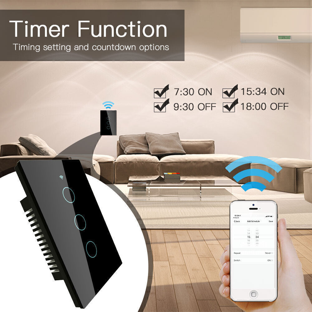 You Might Also Like Waterproof Digital Sports Watch Military Tactical LED Backlight Wristwatch Men 9.56 USD 10.99 USD Free shipping 13% off Black Resin Watch Strap For CASIO Sport Diving Watch Rubber Replacement Band 7.39 USD 8.49 USD Free shipping 13% off Replacement 6 Channel USB Receiver Dongle For Logitech Unifying Keyboard/Mouse 11.56 USD 13.29 USD Free shipping 13% off Replacement USB Receiver Dongle For Logitech M950 M310 M525 M720 Keyboard 8.43 USD 9.69 USD Free shipping 13% off USB Wireless Bluetooth Receiver 3.5mm AUX Audio Stereo Music Home Car Adapter 8.26 USD 9.49 USD Free shipping 13% off 18MM Watchband For Casio W-800H F-91 W-218H Watch Band Replacement Black Strap 7.82 USD 8.99 USD Free shipping 13% off 1 PCS 7S26A Movement Automatic Rotor Oscillating Weight For Seiko NH35 NH36 11.3 USD 12.99 USD Free shipping 13% off 4 Colors For PSP3000 Shell Case Replacement Full Housing Cover With Buttons 20.87 USD Free shipping 12V Digital Thermostat Temperature Control Switch Sensor Module Board 8.87 USD 10.19 USD Free shipping 13% off Touch Screen Pen Stylus Drawing Universal For iPhone iPad Samsung Tablet Phone 8.69 USD 9.99 USD Free shipping 13% off For NZXT Aer RGB InOut Cable Input Cable Connection Cable Case Fan Adapter Cable 7.47 USD 8.59 USD Free shipping 13% off Watch Band Leather Wrist Replacement Strap Quick Release Buckle 14/18/20/22mm 8.0 USD 9.19 USD Free shipping 13% off Product Description If you have any questions, please contact customer service first, do not open disputes easily, thank you! Description: Update 1: Multi-control in a much easier way. Update 2: New pairing mode with WiFi+Bluetooth. Update 3: Backlight ON/OFF optional. Update 4: Relay status adjustable when power off. Features: 1. New idea for 2/3 Way circuit (two switches control one light)that is explained as multi-control association of this switch to other WiFi smart switches in App. Capacitive touch control, turn on/off your light with a single touch and scratch resistant glass panel gives the best look to blend with any wall design. (Note: You can multi-control associate of this switch to multiple different switches, but several gangs on one switch is not available, only one gang on one switch can be associated for multi-control.) 2. Differ in features from traditional common switch, this smart switch is able to be controlled by various ways alone with the best value like App control,touch control,voice control and built-in RF433 frequency allows for another control via RF remote control switch with encoding 1527 without interference. Achieve multi-control by associating to other smart switches. (Note:433 RF Remote is not included in the package, please purchase separately.) 3. Reinsert new features into upgraded Smart Life Tuya App like ON/OFF relay status as remember last status when power off and backlight switch setting. Compatible with for Alexa and Google home allows free voice control; remotely control devices on your smart phone via Smart Life/Tuya App wherever you are. 4. Take full control of connected appliances with timers, schedules and countdown (1/5/30 mins, 1 hour, etc.) with the app; share control with family and friends for added convenience 5. Neutral wire is required in your switch boxes to operate correctly;only supports 2.4G network;a much easier pairing mode for adding the device with WiFi and Bluetooth connected. Parameter: Working voltage: AC100-250V,50/60Hz Current type: Total 10A Rated load: 2200W/1Gang Wireless type: Wi-Fi 2.4GHz Power consumption: Less than or equal to 0.5W Working temperature: 0 Celsius~40 Celsius Support system: for Android\iOS RF Frequency: 433MHz RF Standard Code: 1527 Package list: 1* Smart Glass Panel Switch About Us We accept all payments authorized by eBay. About Us We accept all payments authorized by eBay. powered by