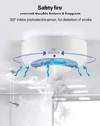 1. Technical Parameter Power supply:DC9V alkaline battery (no include 6LR61) Static current:<10uA Alarm current: <100mA Working temperature:0℃ ~ +50℃ Humidity:≦95%RH,no freezing Alarm sound:>90dB Low battery alert:≦7.0V±0.2V 2. Mute & Testing Mute: in alarm status, press the 'TEST' button to mute the buzzer, only LED indicator flashes. Testing: in normal status, long press 'TEST' button for 2s to trigger the sound & light alarm, alarm message is pushed to the mobile APP. 3. WiFi Configuration & Networking Install 'Tuya Smart' APP on your smartphone the first time you use the detector. Make sure your smartphone is connected to the 2.4G WiFi (5G not support) a) Launch the APP, click 'Add device'---'Security Sensor'---'Sensor (WiFi)' / "Smoke(WiFi)". b) Long press the 'TEST' button for 5s until LED flashes with a short beep of 'Di' (long press the button within 20s of loading the battery to enter WiFi configuration mode). c) Click 'OK' in the APP---input password for the WiFi an click 'OK', the detector enters configuration mode which lasts for 60s maximum. A long beep of 'Di' with LED indicator on for 10s means the WiFi configuration is completed. When WiFi configuration fails, the detector exits configuration mode with short beep of 'Di Di Di'. WiFi configuration is done based on the 3 steps above. WiFi Networking Status: when LED indicator is on for 10s after battery is loaded, it means the detector is successfully connected to WiFi. 4 Installing method a. Make a hole on the ceiling by using the percussion drill b. Install the expansion tube on the ceiling c. Fix the installation board by using the screw d. Aiming the alarming device with the installing board and connect them, rotating clockwise till heard the "kaca" sound, means installing correct. Notice: Due to air traffic control, there is no battery inside the product.