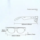 Feature: 1. Practicality: BT Glasses integrate the functions of Bluetooth headset and glasses, providing users with more convenient communication and music experience. 2. Fashion: BT glasses adopt exquisite design and diversified colors and styles, which can meet the needs of users for fashion and personalized. 3. Comfort: BT glasses use high-quality materials and ergonomic design to provide comfortable wearing experience. 4. Portability: BT glasses design compact, easy to carry, can be used at any time. 5. Safety: BT glasses allow users to personally experience Specification: - Type: Smart AI Glasses - Connectivity: Bluetooth Connection - Waterproof Rating: IP65 Waterproof and Dustproof (Industry High Standard) - Battery Type: High-Density Polymer Lithium Battery - Battery Capacity: 150mAh - Battery Life: 6 hours of music, 5+ Days Standby - Charging Method: Magnetic Charging (Short-Circuit Protection) - Control Method: Touch Control / Synchronized with Mobile App - Leg & Frame material: TR Toughness Material - Lens meterial: PC - Net weight: 43g Package: 1 x Smart glasses 1 x Glasses cloth 1 x Charging cable 1 x User manual