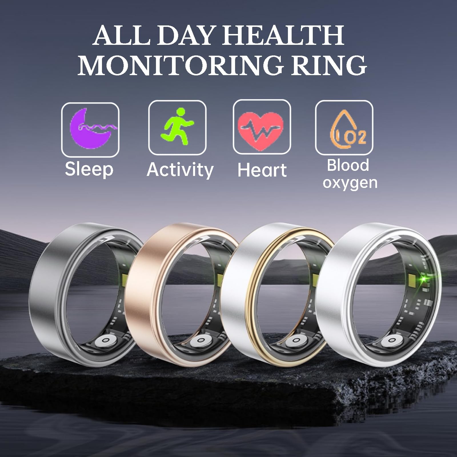 Smart Ring Health Fitness Tracker, Size First with Sizing Kit, Activity & Sleep Tracker/Heart Rate Monitor, Waterproof Smart Ring for Men/Women, No App Subscription MULTIFUNCTION: - Pedometer: Steps, Calories, Distance - Heart Rate Monitor - Blood Pressure Monitor - Sleep Monitor - Sport Modes Compatibility: Smartphone iOS 5.0 or above, Android 10.0 or above Packing: - 1* Smart Ring - 1* User Manual - 1* USB Type-C Charging Case (without cable) Size Before You Buy - Ring sizes are different from standard ring sizes.It is strongly recommended to measure the size before purchasing. Please according to the wearing instructions on the details page, first measure your finger circumference, then calculate the inner diameter of your finger, find the corresponding ring size number and select it. All Day Monitoring -The Smart Ring is fully integrated with health monitoring, fitness tracking and sleep quality analysis. It monitors your heart rate, oxygen saturation, and blood oxygen 24 hours a day, making sure you know your health at all times.The Fitness Ring connects to your phone via Bluetooth to track detailed information.Data can be easily viewed through the mobile app without any subscription fee. Movement Index -The smart health ring tracks your activities throughout the day with high precision. For example, the Fitness Ring tracks your steps, distance walked and calories burned. In addition, the Smart Ring features different exercise modes such as walking, running and cycling. Analyze mapped routes and detailed workout data to improve your performance and exceed your limits. Sleep Index -The sleep tracking feature makes it an ideal health companion.Derived to help you understand the various sleep stages such as deep sleep, REM sleep, Light sleep and being awake, during different stages of sleep, different metabolic processes of the body occur for growth, repair, restoration, and maintenance. Easy To Wear - The Tracker Smart Ring ultra-thin design, only 2.5 mm thick, is so light that it seems to blend into the skin. 5ATM diving grade waterproof standard. Whether it is daily washing hands, taking a shower, swimming in shallow water, or even doing water activities such as snorkeling, it can provide reliable waterproof protection.The Smart Ring has an amazing 10-day battery life and can be fully charged in just 1 hour.with a charging bin full can be standby for about 60 days.