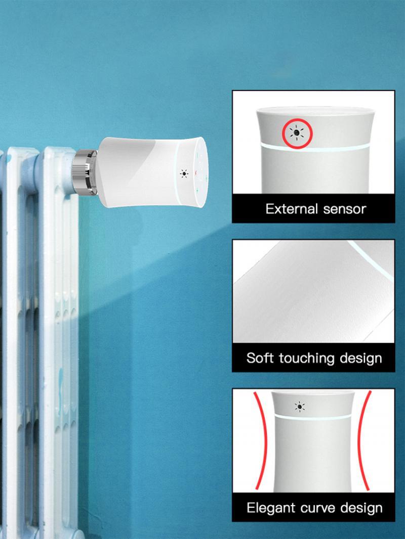 【Note】 The products sold in this store are all ecological chain products authorized by , and the products do not carry the logo . Description: 1.New Soft Touching Design with Humanized Upgrades:New mini elegant curve design with extremely graceful arc waist shape and rubber stretch paint, feeling like baby skin that fits well to any decoration styles. Differs from traditional display on the valve body resulting in reading trouble from the installation position,this new version is featured as LED display, no window, and wider perspective on the top of the cover; two sections of AA batteries powered(NOT INCLUDE),which is a special valve using cooperatively with heating radiator to control the closing and opening of the pipe. 2.A Tuya Wireless Gateway Hub is a Must : A wireless hub is a must that connects to the valve many other smart products and realizes the whole linkage of your smart home devices.Simply add your gateway to the App,then add your radiator actuator to your gateway in the Smart Life App,even smart automation to other smart devices in APP by creating various scenes flexible controls on smart phones. 3.External Sensor Design for More Accurate Measurement:Functional extremely well with external sensor on the valve that provides accurate readings for house temperature,ensures much more convenient and intelligent control to your smart lifestyle;Soft and sensitive touch control on the home screen,together with intelligent control on Smart phones,are both featured for this new radiator valve. 4.Programmable Schedule with Weekly Programming Selection:Supports manual set up 5 2 weekly schedule with 4 periods for option ,providing you with the maximum convenience for different situation and setting customized schedule for your house temperature.Holiday mode,automatic mode,temphand and manual mode available for added convenience;Energy saving in a real sense with low battery tip and Eco-mode supported. 5.Voice and Remote Control for the Tuya Wireless Gateway:Supports App remote control via your smart phone,together with the hands-free voice control via Alexa and Assistant after successfully connecting your valve to Tuya /Smart Life App on the basis of Tuya Wireless Gateway;Window check and diagram of temperature curve are added in APP for real-time monitoring of room temperature. Specifications: Power Supply: 3 V,2xAA Batteries, Packaging not have battery. Maximum stroke: 4.5mm Accuracy: ± 0.5°C Set Temp. Range: 5~45 °C Display temp. Range: 0~70°C Ambient Temp.: 0 ~ 45 °C Ambient Humidity: 5 ~ 95 % RH (Non Condensing) Storage Temp.: -5~ 45 °C Timing Error: < 1% Protection Class: IP 20 Buttons: Capacitive Touch Buttons Package Included: Raditor Thermostat 1pc User Guide 1pc RA Adapter 1pc RAV Adapter 1pc RAVL Adapter 1pc Comap Adapter 1pc T A Herz Adapter 1set Herz Adapter 1pc Notes: This product needs to be used with zigbee3.0 gateway!