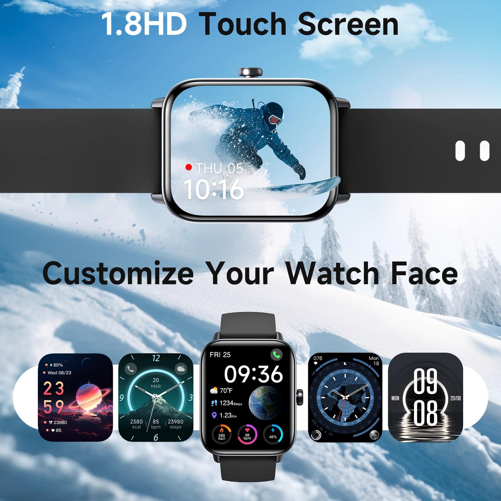 A smartwatch is a wearable device that seamlessly combines the functionality of a watch with the capabilities of a smartphone. It allows you to stay connected, track your fitness activities, and access various apps right from your wrist. With a sleek and modern design, a smartwatch offers a convenient way to receive notifications, make calls, send messages, and control your music playback. Many models also feature advanced health and fitness tracking capabilities, monitoring your heart rate, steps taken, calories burned, and even sleep patterns. Whether you're an active individual or someone seeking a streamlined way to manage your digital life, a smartwatch is a versatile accessory that keeps you organized and connected on the go. [Bluetooth and Message Reminder] smart watches for women/men adopts bluetooth 5.3 new version for a faster and more stable connection and equipped with built-in HD speaker, connecting to the smartphone via Bluetooth, so you can directly use the smartwatch to answer or make calls. It supports various intelligent reminders, including text, social network messages Facebook, WhatsApp, Instagram, Twitter, daily reminders, and more. (THE WATCH CAN NOT SEND MESSAGES, or TEXT BACK, Bluetooth connection distance 8-10 meters). [1.85-inch HD Screen and DIY Dials] The Women's Smartwatch features a 1.85-inch high-definition high-sensitivity touch screen with a resolution of 320*385, providing highly responsive touch, which can bring you a unique visual and better interactive experience. You can download your favorite pictures and set them as the dial to further personalize settings, such as sports photos, family photos, pet photos, landscape photos, and cars as wallpapers. [24/7 Health Monitoring] The fitness tracker watch is equipped with high-performance optical sensors that will record your all day activities, accurately monitors your heart rate in real time and it will monitor your blood oxygen levels, heart rate, stress, and sleep patterns. Sync all recorded data to your for insightful health analysis, empowering you to make informed lifestyle adjustments. Non-medical use. [110+ Sports Modes and IP68 Waterproof ] The sports watch supports more than 110+ sports modes, including Walking, Running, Hiking, Boating, Climbing, Cycling, Fitness, Football and so on. During your exercise, it will record your data like heart rate, steps, calories burned, distance in real time. Fitness watches is IP68 waterproof rating, ensuring use even while washing hands, face, or engaging in sweaty activities. Non-medical use. [Broad Compatibility] The smartwatch compatible with iOS 9.0 and Android 6.0 or above, including but not limited to iPhone 6~iPhone 15, Sa-ms-ung, Go-ogle pixel Nexus, Microsoft, Huawei, Xiaomi HTC and More, built-in Alexa, multiple functions such as alarm clocks, music control, stopwatch, timer, sedentary reminder, female menstrual cycle tracker, etc. [Long-Lasting Battery Life] Large battery capacity (300mAh) and low power consumption design provide longer battery life. With a quick charging time of 1.5-2.5 hours, one charge can meet 5-7 days of normal use, and the standby time is up to 30 days, saying goodbye to frequent charging. [Easy to Set Up] 1. Charge the smartwatch; 2. Download the "Veryfit" App; 3. Turn on Bluetooth on your smartphone; 4. Scan the QR code on the smartwatch to pair. Please keep Bluetooth on for better synchronization of watch data. The effective range of Bluetooth is within 10 meters(32.81ft). [5-Year Gua-ran-tee] provides our customers 5-year wa-rranty and 24/7 tech support for IDW19 bluetooth smart watch. For any product problems or suggestions, please don't hesitate to . We will response within 24 hours to solve your problem. We highly value your experience in stores, and your comfort comes first.