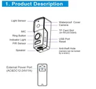 Tuya Video Doorbell WiFi Wireless Door Bell Camera 1080P Two-Way Video Intercom Smart Life Battery DC AC 12-24V Camera Doorbell with Chime 1) Powered by rechargeable battery or hardwired connection(DC/AC 12-24V) 2) 1080P Full HD 2-Mega pixels with 130° wide viewing angle 3) Monitor your home from anywhere with a WiFi connection (2.4G WiFi) 4) Day and Night mode automatic switching to ensure a crystal view 5) Two-Way Audio with noise cancellation, built-in microphone and speaker 6) Waterproof design to ensure non-stop operation in weather condition 7) Support PIR Motion Detection, push alert notification to mobile phone if someone hovers around the door 8) Support Cloud Storage and Local Micro SD card Storage (max. 128G, card slot is inside the doorbell) 9) APP: Tuya Smart or Smart Life Note: 1. This product does Not work with Alexa or Google 2. The SD card insert slot is inside the doorbell case, on the board. Please unscrew the back case and you will find the SD card slot.