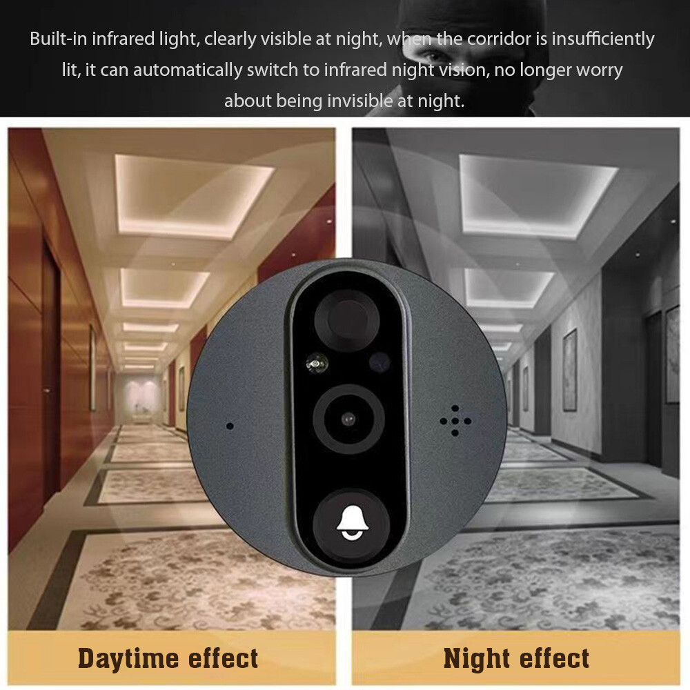 Title: Smart WiFi D oorbell With 1080P/120°Camera V ideo P eephole F or D oor 4.3" LCD Screen 24H PIR Movement Detection Eye Features: Support mobile phone remote monitoring: intercom, view visitors, video calls, snapshots, recording, etc. At the same time, it supports 9~12 mobile APP users, so that you and your family can check the outdoor situation at any time. After downloading the app, you can connect the monitoring device to your smartphone in less than two minutes.The operation is simple and safe No matter where you are in your home or even abroad, you can easily answer the doorbell remotely and monitor the outdoor environment This trend of future technology, free your hands, and enjoy using a mobile phone to control the whole house of smart home appliances! Specification: Display:4.3-inch HD screen Lens:Infrared light Daytime image effect:HD true color Night image effect:Monitoring level image Clarity:1440p Adapter door thickness:40mm-105mm Adapter cat eye aperture:1.5cm-4.8cm Viewing Angle:Wide Angle The charging interface:Host USB interface Remote intercom:Support Cloud storage:Support Storage :Supports memory cards WiFi frequency band:2.4 GHZ Outdoor unit material:Zinc alloy Package list: 1*Host 1*Camera 1*2m charging cable 1*Steel plate 1*Screw bag All loved it , you must satisfied!