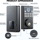 Keyless Entry Door Lock with APP Control - Fingerprint Deadbolt Door Lock, Electronic Keypad Lock, Smart Locks for Front Door , Auto-Lock & One Touch Locking with Bluetooth (4 AA batteries are included.) Smart door lock installation steps: About this item 【Keyless Entry Door Lock】 OWLING Smart lock supports up to 300 passwords, so you can easily give a 6-digit one-time code to a pet sitter, delivery person or housekeeper for convenient keyless entry and simplified access control. You can also use a mechanical key to unlock your digital lock 【Easy DIY Installation】 Our door locks are perfect for most US doors and can be installed in less than 15 minutes with just a screwdriver - no additional drilling or special tools required, and the safety door lock automatically adapts to both left and right doors to ensure a seamless fit in your home 【Keypad Code】 Fingerprint door lock can recognise fingerprint in 0.3 seconds and unlock in 1 second with 99.99% recognition rate. And add up to 300 user passwords, 50 fingerprints, one-time password, 2 spare keys, anti-peep code and comes with 4 AA batteries that can work for more than 1 year! 【Auto Lock & One-Touch Lock】 Customise the auto lock from 5-1800 seconds with the handleless keypad door lock, you can also disable the auto lock to keep the lock unlocked. Press any button on the keypad for 2 seconds to activate the one-touch lock and secure the door easily 【Safety and peace of mind 】 Protect your loved ones with the ultimate in security with our smart fingerprint door lock. With advanced security features such as automatic locking, one-touch locking, anti-peeping code and low battery alarm, your home can be protected from unauthorised access. Wherever you are, you can rest assured that your property is safe Return 1. Accept Return in 30 days for refund or replacement, goods in resalable condition 2. Offer one year for repair warranty 3. Contact for address and reference number before return(note: unannounced parcel may be returned to wrong address, seller will not be responsible for this 4. First 2 months of purchase, buyer pay return postage, seller pay postage for replacement, After 2 months of purchase, non-quality problem, 2 ways of shipping cost paid by the buyer, After 4 months, two way shipping cost paid by the buyer in any circumstances 5. No factory warranty for the man-made damage(Such as dismantle mainboard, damage screen etc), Our company offer service, factory may charge for repair, contact us for details Shipping Fast shipping by US LOCAL FAST SHIPPING, Mostly, all of the products will be shipped out within 1 working day after we received the payment and your contact phone number, We always ship to your paypal address, so if your shipping address is not matched with it, please note the address you want us to ship in paypal Why Choose the US Stock? 1. US Local Shipping, No Extra Customs Cost to the US 2. Fast Delivery: 2-5 Working days Delivery 3. Best After-Sales Service!!! Feedback Please leave five stars positive feedback positive comment and Five-Stars. Contact us if you have any question, Give us a chance to serve you, negative feedback could not solve anything. communication Please! Payment We accept all major Credit cards, PayPal, and Google Pay. Taxes may be applicable at checkout.