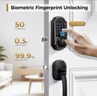 Upgrade your home security with the ARPHA Camera Smart Door Lock, a modern fingerprint lock designed to offer convenience and safety. With its universal mounting capability and sleek matte black finish, this lock fits effortlessly onto a variety of doors, including front entrance, patio, and garage doors. The package comes complete with all necessary items for installation—front lock, keys, instructions, and hardware components—ensuring you have everything you need for a seamless setup. Enjoy the ease of keyless entry with the ARPHA Smart Door Lock's WiFi-enabled features and the convenience of managing access via the accompanying smartphone app. The lock boasts a robust 150° wide-angle video screen for clear monitoring, anti-peeping password functionality, and real-time unlocking records. Not to mention, the added peace of mind with the 1-year manufacturer warranty.