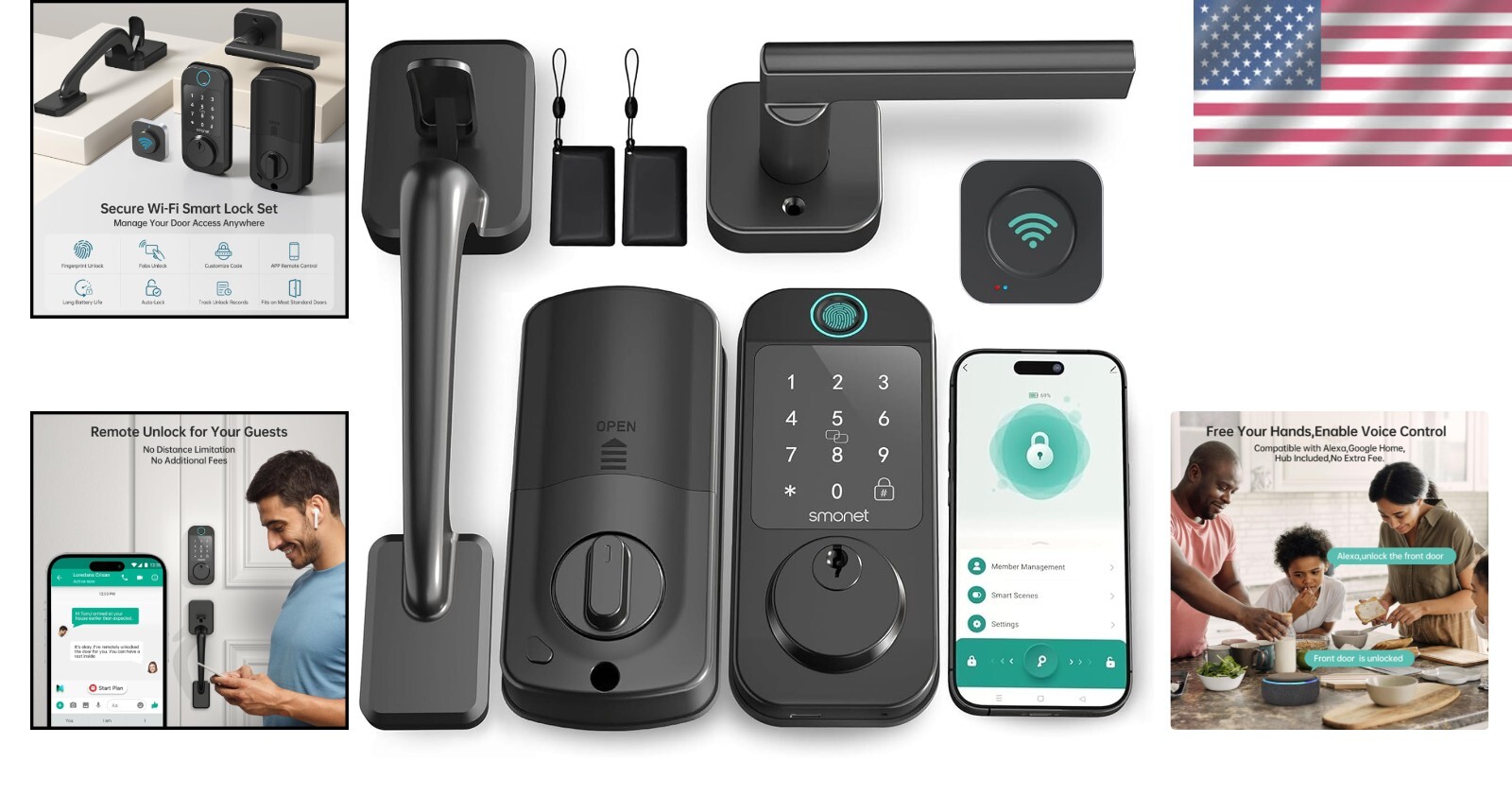 WiFi Fingerprint Keyless Entry Deadbolt with Smart Handle for Ultimate Security ‹ › ‹ › ‹ › ‹ › ‹ › ‹ › ‹ › ‹ › ‹ › ‹ › ‹ › WiFi Fingerprint Keyless Entry Deadbolt with Smart Handle Ultimate Security Meets Unmatched Convenience Transform your home's security with our WiFi Fingerprint Keyless Entry Deadbolt. Offering cutting-edge technology and a sleek design, this lock set elevates both safety and style, making it the perfect addition to any modern home. Features: WiFi and Bluetooth Connectivity: Enjoy remote unlocking capabilities, ideal for vacations or rental properties. 10 in 1 Secure Access: Unlock with fingerprints, an app, anti-peep codes, key fobs, or traditional keys. Flexibility at your fingertips! Fast Unlocking: 0.5S fast unlock with a single touch, ensuring you never fumble with keys again. Auto Lock Feature: Automatically locks within your pre-set time frame of 5-900 seconds. Real-time Notifications: Receive alerts when your kids arrive home and unlock the door. Voice Control: Easily integrate with Alexa for hands-free unlocking while cooking or busy. Custom Access Codes: Perfect for rental properties, allowing for individualized codes for guests. Anti-peep Code Functionality: Safeguard your access by entering random digits before or after the correct code. Easy DIY Installation: High-quality structure, long battery life, and a simple installation process requiring only a portable screwdriver. Quality Assurance: Enjoy a 30-day purchase policy and one-year quality assurance with dedicated customer service. Benefits: Enhances your home security while providing hassle-free keyless access. Perfect for families and busy lifestyles, making your day-to-day routine simple and efficient. Seamlessly fits into your life, whether at home, on vacation, or managing rental properties. Peace of mind with real-time alerts and voice control integration. Eliminates the worry of lost keys and lockouts, particularly useful for commercial and vacation rentals. Why Choose Our WiFi Fingerprint Keyless Entry Deadbolt? What sets our lock apart is the perfect blend of luxury, security, and user-friendliness. With its advanced features like remote access and customizable codes, you can rest assured knowing your home is protected while enjoying the ease of keyless entry. Perfect for families, busy professionals, and those who value sophistication. Don’t compromise on your security. Invest in the future of home protection with our WiFi Fingerprint Keyless Entry Deadbolt and experience the convenience you deserve. Shipping Free & Fast Shipping - We offer free shipping to most of the USA with a normal delivery time of 3-10 businessdays. However, due to various situations, additional delivery time (up to 3 weeks) may be required for some items. Alternative Carriers - We may use alternative carriers (e.g. USPS, FedEx, UPS, etc.) to ensure your package arrives safely and on time. Due to the use of multiple carriers, we are unable to provide a tracking number automatically. Handling Time - Orders are processed and shipped within 1-5 business days of receiving cleared payment. Shipping Restrictions - Shipping to Alaska, Hawaii, Puerto Rico, Guam, and other US territories may incur shipping charges or delivery restrictions. Please contact us before ordering, or your order can be refunded/cancelled. State Restrictions - There may be restrictions based on your state of purchase. For example, certain items may not be shipped to California due to state regulations. Contact for Tracking Updates - If you require tracking updates or have any concerns about the delivery of your order, please feel free to contact us, and we will be happy to assist you. Return Please see our ebay return policy. We do not accept return on most products. This is to avoid customers mis-using ebay returns. All sales are final. Please be sure to check the return policy listed at the top of the listing. In rare cases, we may accept returns, if the buyer pays both ways shipping and 20% restocking fee. If you are un-sure of return policy of a particular item, please ask before buying. Payment We accept all major credit cards, PayPal, and Apple Pay for your convenience. Your payment information is secure and encrypted to ensure a safe and seamless transaction. Please complete your payment within 3 days of purchase to avoid any delays in shipping. Feedback Your feedback is extremely important to us. We strive to provide the best products and customer service possible. If you are satisfied with your purchase, please take a moment to leave us a positive review. If you have any concerns or issues with your order, please contact us before leaving negative feedback. We are committed to resolving any problems and ensuring your satisfaction. Contact Us If you have any questions or concerns, please feel free to reach out to our customer support team. You can contact us through the eBay messaging system. We are available Monday to Friday, 9:00 am to 5:00 pm EST, and we will do our best to respond to your inquiry within 24 hours. Buy it now and enjoy a pleasant shopping experience! UPC: Not Set Model: Not Set Unit Quantity: 4.44 Material: Alloy Suitable For: Front Door,Garage Door,Residential,Apartment,Rental,Vacation House,Side Door,Back Door,New Home,Gifts for Men,Gifts for Women,Gifts for Wife,Gifts for Husband,Christmas Family Mounting: Universal Features: Adjustable Backset,Easy to Install,Electronic,Keyless,Self Closing,Simultaneous Locking,With Key,Auto Lock,Easy DIY Installation,High Quality Handleset,Long Battery Life,Weather Resistant,Waterproof,Auto-Lock,One Touch Unlock,Real Time Record,Fingerprint,Fob,Codes,App,Key,Alexa Remote Unlock Items Included: Fobs,Exterior Lock,Interior Lock,Handleset,Latch/Lock Screws,Keys,Diagram Template,Mounting Plate Brand: Unbranded Type: Deadbolt Color: Black Finish: Painted Throw Length: Not Set Item Height: Not Set Item Width: Not Set Cross Bore Diameter: 2.5 in MPN
