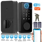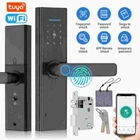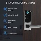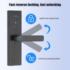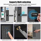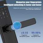 A- Smart Door Lock Feature: 1. Multiple unlocking methods: This 7-in-1 smart door lock can be unlocked by Tuya WIFI remote control, fingerprint, anti-peep digital password, IC card, Tuya application, temporary password, and mechanical key. Front door lock with short response time, security and convenience are essential for a smart home. 2. Smart door lock: This keyless entry door lock can easily manage your smart lock through the "Tuya" APP, and you can authorize multiple administrators to manage it. You can modify the volume and opening direction of the door lock and use the mechanical key and emergency power supply when the door lock is out of power. 3. APP remote control: This keyless entry door lock allows you to view visitor records on the Tuya APP, check which visitor unlocked at what time, and improve the security level of your home. In addition, you can also remotely control the unlocking through the APP. 4. Long battery life: 4 AAA batteries (not included) can provide 5000 openings (about 6 months). Upgrade the anti-touch function. As long as the number you enter contains the correct sequence code it will unlock. 5. Easy to install: The fingerprint electronic door lock can be easily installed by yourself in a few minutes with just a screwdriver, no additional drilling, and no need for professional locks. Suitable for door thickness: 35-70mm Specification: Type: WiFi smart door lock Color: Black Panel material: aluminum alloy Lock body material: stainless steel Lock cylinder material: copper Applicable door thickness: 35-70mm Batteries: 4 *AAA batteries (not included in the package) Size: 36.5*7.2cm P acking list: 1 x Smart Lock 1 x bare tube 2 x screws 2 x magnetic card 1 x square rod 2 x keys 1 x lock body 1 x gusset plate 1 x buckle box 1 x instruction manual B- Smart Door L ock Feature: 0.3S QUICK ACCURATE IDENTIFICATION OF YOUR FINGERPRINT: you don't need to look for the key at the door when you go home. You just need to touch your fingerprint gently to open the door. When you have a lot of things in your hand, the keyless entry door lock can play its role, making it easy for you to go home 4-IN-1 SMART DOOR LOCKS FOR FRONT DOOR: Compared with traditional locks, our digital door lock have four ways to unlock the home. Fingerprint, IC card (2 PCS), key (2 PCS), password. You can choose any method to open your door. The multi- functional lock makes your life more convenient. The lock requires 4 No. 5 batteries (not included) VIRTUAL PASSWORD UNLOCKING: prevent peeping to protect privacy,effective password protection, input any password before and after the correct password, as long as the correct password is continuously input, it can be unlocked. The smart lock can input 32 digits, including the real password. Enter a random password before or after the correct password to protect your password from prying WATERPROOF SUNSCREEN AND RUST PROOF: different from other door locks (most internal panels are plastic), our door locks, except for the battery cover, are made of zinc alloy. It is more durable and suitable for use on the front door without worrying about quality problems NOTICE FOR PURCHASE: This lock is applicable to wooden doors. Dear customers, please carefully check the last size map in the picture before purchasing, so as to improve your shopping pleasure. If you have any after-sales problems, please feel free to contact us and we will solve them for you NICE GIFT: The smart lock is also suitable as a Christmas gift for your girlfriend, parents and friends. It is exquisite and practical Specifications: ▪️ Product name: keyless entry door lock ▪️ Product material: aluminum alloy ▪️ Fingerprint collector: semiconductor fingerprint head ▪️ Power supply: 6V ▪️ Low voltage alarm: 4.7V ± 0.2V ▪️ Relative humidity: 20% - 90% ▪️ Operating temperature: - 25 ° C~70 ° C ▪️ Dynamic current: ≤ 60uA ▪️ Static current: > 250mA ▪️ Applicable door thickness: 35-85 ▪️ User capacity: fingerprint/password (100 groups each) ▪️ Number of administrators: 3 ▪️ Applicable door thickness: 35mm-65mm ▪️ Emergency power supply: USB type-c port ▪️ Applicable scene: indoor wooden door, office door, entrance door, apartment hotel door Package Includes: 1 x keyless entry door lock 1 Set of Accessaries 1 x Instructions C - Smart Door Lock Product Function 【Smart & Secure Door Lock】The keyless smart lock with handle fit for 1-5/16'' ~ 2'' (33mm-50mm)thick door. Reversible handle lock is suitable for both left-handed & right-handed. Totally you can manage 200 of user code, built-in auto-backlit Touchpad. Ideal new home gifts for the home! 【5-in-1 Smart Lock】Unlock Hbodier smart door lock with your fingerprint, card, passcode, backup key, security APP. Multiple fingerprints can be set through the APP, bringing you a fast & best secure recognition system. You don't need to worry about forgetting to bring the key or smartphone. Accurate and extremely responsive unlocking response works perfectly for kids and the elder. Guard Your Family Safe】Security with the electronic door lock is much higher than other locks, the automatic door locks could be locked automatically within 5-120s. No worries about forgetting to lock your door ever since. Set the one-time or Customized passcode for guests, visitors, or other people. When entering the password incorrectly more than 5 times, the deadbolt lock will lock for 5 minutes and the admin could track all unlock records by phone in real-time. 【Easy Installation】Detailed installation instructions are included with the package. Even if you don't know anything about the installation principle, just follow each step in the manual to install, and you can get a perfect smart door lock. All installation steps require no additional drills or holes, just a normal screwdriver and the tools included in the package to complete the installation Remote Control:Works with G2 gateway to connect home Wifi ne