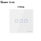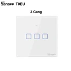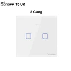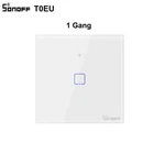 SONOFF TX Series T0 EU/ UK/ US Smart Home Switch Wifi Touch Switches Wall Light Switch Wireless App Voice Remote Control SONOFF T0EU/ UK/ US Wifi Smart Wall Switch can be controlled remotely using your phone, and devices connected with switches can work independently. Works with Amazon Alexa and Google Assistant which let you turn on or off your appliances with a voice command, perfect for those need to handle much housework simultaneously. A slight tap for easier control. Set a time for devices and the switches will help you turn on or off them automatically. Tailor smart scene for your appliances. simply set an event to happen to trigger one SONOFF device or groups of devices with a tap on your phone. Your devices will not run because of an abnormal WiFi network, the LAN control hence is designed to make sure they can work normally. APP Remote Control Just tap on eWeLink App to turn on a light anytime and anywhere. A lighted house anticipates your arrival Share Control Share control of your home appliances to your family or friends so that they can also control the devices remotely Hands-free Voice Control Compatible with Alexa & Google Home, the smart switch allows you to control lights on/off with your voice Smart Scene Create smart scenes to make one SONOFF device trigger on/off another one, or group multiple devices to control them with one tap Sync Status Real-time device status can be provided on eWeLink App in order that you can track status change of your devices Timer & Schedule Set up timing schedules to turn on/off lights Toughened Glass Panel Design Waterproof, fireproof, and easy-to-clean toughened Glass Panel & PC shell design not only decorate your house, but also feel smooth like a mobile phone screen The sensitive touch buttons are nearly invisible when it's no installed, and in 90% brightness in use and 30% brightness on the standby mode. Easy to locate but less bothering in the night Packaging Details Unit Type:piece Package Weight: 0.2kg Package Size: 20cm x 20cm x 20cm