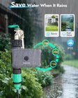 055-FT 【APP Remote Control】Use the Smart Life APP to add the WiFi Water Timer to your WiFi hub (2.4 GHz WiFi only) so you can create watering schedules anytime, anywhere. The WiFi Sprinkle Timer connects to the gateway via RFID technology and supports longer distances (up to 196 ft.), providing a more stable signal than a Bluetooth connection. So you can travel with confidence! Note: Not compatible with tablets. 【Smart Voice Control】 The Smart WiFi Timer is compatible with Alexa and Google Assistant, so when you're too busy with other tasks to operate your phone, you can turn the watering timer on or off with a simple voice command. Enjoy the convenience of controlling your watering system with your voice 【Bluetooth Control Function】 In addition to being controlled by the WiFi hub, the WiFi watering timer can also be controlled by the Smart Life APP via Bluetooth. Even if there is a power outage at home and the WiFi hub does not work, you can still set and manage the watering program on the APP via Bluetooth. The maximum working range of Bluetooth is 49.2 feet in an open area without obstacles 【Two Irrigation Modes】The Outdoor Sprinkle Timer has a timed irrigation mode and a regular irrigation mode. The two different irrigation modes allow you to set different watering times and frequencies, and you can set up to 20 different irrigation schedules and adjust them as often as you like (please make sure that the distance between the router and the WiFi hub, and between the WiFi hub and the timer is between 3 and 10 meters, and make sure that the water faucet is always on) 【Rain Delay & Manual Watering】 This WiFi hose timer features a rain delay that can be set to go 24, 48, or 72 hours without watering, as well as a manual mode for more flexible watering schedules 【Expand Irrigation System】 With just one WiFi hub, you can expand up to 32 WiFi timers to build a smart irrigation system for your garden. In addition, you can add family members to the app to share home irrigation management 【Note】Smart Sprinkler Timer can only connect with 2.4GHz WiFi. If your router is a dual-band router, please enable the 2.4GHz WiFi band separately and name it differently from the 5GHz WiFi band