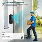 Feature : Sensor: 720p GC1054 CMOS sensor Lens: 120 ° wide angle lens Sensor performance: support automatic white balance, automatic gain control, automatic backlight compensation Signal-to-noise ratio: ≥ 39dB Minimum illumination: 0.8Lux/F1.4 (color mode), 0.3Lux/F1.4 (black and white mode) Night vision: automatic switching of two filters, six 850nm Φ 28Mil high-power infrared lamp Human figure recognition: the human figure will be recorded automatically when it is detected (if it is not detected, the human figure will go into sleep automatically) Video format: MP4 (H.264) Video size/frame rate: 720P/20fps Video recording method: 1. Mobile detection video; 2. Press the key to trigger the recording; 3. Preview the video Battery type/capacity: 18650 cell 2600mAH * 2=5200mAH Network protocol: TCP/IP/HTTP/TCP/UDP/DHCP/DNS/DNS/NTP/RTP/P2P WIFI connection: 2.4GHz wifi, support (802.11 b/g/n) Dingdong: support RF 433MHZ Dingdong Working voltage: 3.7V 18650 lithium battery Working current: working current 280mA, sleep standby current 0.8mA USB charging voltage: DC 5V/1.5A Storage temperature (℃): (0 ℃~50 ℃) Operating temperature (℃): operating temperature: - 10~70 ℃, operating humidity<95% Wake-up mode: 1. doorbell button wake-up, 2. PIR detection wake-up, 3. mobile phone active wake-up APP access doorbell rules: 1 main account+8 shared accounts=9 users can connect to the doorbell, only 3 users can preview the screen at the same time, and only one user can talk to the doorbell at a time Purpose: Guests can make video and voice calls and make short videos when visiting. The host can know the information of visitors without opening the door Description: 1. Wireless connection, ultra-low power consumption, remote active wake-up, and simultaneous online viewing of multiple accounts; 2. Infrared night vision, the best effect is 5 meters, and the longest distance is 20 meters; 3. PIR mobile detection, sensitivity adjustable detection distance, the best 2 meters, the farthest 4 meters (affected by ambient temperature and light); 4. Support cloud storage function (hardware without TF card function); 5. Video recording duration: ① When the mobile detection is started or the doorbell is pressed during a visit, the video will be recorded for 20 seconds at the same time, and the backdoor bell will automatically enter the sleep mode. After entering the sleep mode, the mobile detection is started or the doorbell is pressed, and then the video will be recorded for 20 seconds; ② Each time the mobile APP enters the preview video, the duration is limited to 3 minutes, and the video is stopped after 3 minutes; 6. IP65 waterproof grade. Package includes: 1 x Doorbell 1 x Chime 1 x Installation Package 1 x double-sided adhesive tape 2 x 18650 lithium battery 1 x charging data cable 1 x Instructions
