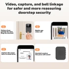 【Intelligent night vision】 the light sensor on the doorbell will provide a clear vision in the dark of the night, 140 degree wide angle lens: Use the app to get the full 140 degree view of your front balcony. See your visitors clearly and effortlessly, only Support 2.4G WIFI, NOT support 5G WIFI ) 【Real-time bidirectional audio】 When someone presses the doorbell, a notification will appear on your mobile phone or tablet. You can the port remotely using the app. Communicate directly through your device 【Wifi compatible】 the wifi range of the video doorbell is up to 10m (33 feet), it easily connects to your home wifi network by sending live video to your phone. You can see and talk to the visitor from the comfort of your bed, at work or on vacation 【WIFI connection】 no wire needs, achieve a two way intercoms between the doorbell and mobile phone.Real-time mobile phone, support two-way calls, photos, recording, caring for your family makes you more secure (Support 2.4G WIFI,NOT support 5G WIFI) 【Easy installation】 The doorbell can be controlled by APP, automatical work model, intelligent and portable.Portable in size and weight, convenient to install and remove, Battery not include , need to install 3 *AAA battery for use Specification: Type: Wireless Doorbell Material: plastic Image sensor: cmos minimum 0.01 (lux) Lens: 3.6 (mm) Snr: > 48 (db) Working temperature: 0-50 (℃) Backlight compensation: auto Electronic shutter: 50000/1 Alarm function: support Environment of use: indoor Effective distance: 5m Surveillance camera lens: millions. Computer surveillance: support Infrared light irradiation distance: 5m Package size:11x7x6.4cm/ 4.33x2.76x2.52 inch Gross weight:148g/ 0.33 lb Package included: 1 x Door bell 1 x Ding-dong machine 1 x Adhesive sticker 1 x User manual 1 x Installation tools Battery not include