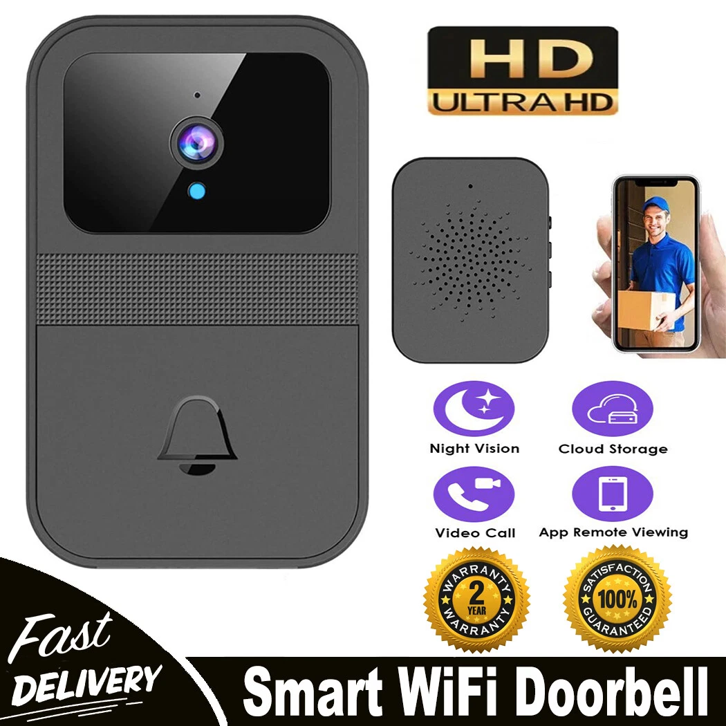 【Intelligent night vision】 the light sensor on the doorbell will provide a clear vision in the dark of the night, 140 degree wide angle lens: Use the app to get the full 140 degree view of your front balcony. See your visitors clearly and effortlessly, only Support 2.4G WIFI, NOT support 5G WIFI ) 【Real-time bidirectional audio】 When someone presses the doorbell, a notification will appear on your mobile phone or tablet. You can the port remotely using the app. Communicate directly through your device 【Wifi compatible】 the wifi range of the video doorbell is up to 10m (33 feet), it easily connects to your home wifi network by sending live video to your phone. You can see and talk to the visitor from the comfort of your bed, at work or on vacation 【WIFI connection】 no wire needs, achieve a two way intercoms between the doorbell and mobile phone.Real-time mobile phone, support two-way calls, photos, recording, caring for your family makes you more secure (Support 2.4G WIFI,NOT support 5G WIFI) 【Easy installation】 The doorbell can be controlled by APP, automatical work model, intelligent and portable.Portable in size and weight, convenient to install and remove, Battery not include , need to install 3 *AAA battery for use Specification: Type: Wireless Doorbell Material: plastic Image sensor: cmos minimum 0.01 (lux) Lens: 3.6 (mm) Snr: > 48 (db) Working temperature: 0-50 (℃) Backlight compensation: auto Electronic shutter: 50000/1 Alarm function: support Environment of use: indoor Effective distance: 5m Surveillance camera lens: millions. Computer surveillance: support Infrared light irradiation distance: 5m Package size:11x7x6.4cm/ 4.33x2.76x2.52 inch Gross weight:148g/ 0.33 lb Package included: 1 x Door bell 1 x Ding-dong machine 1 x Adhesive sticker 1 x User manual 1 x Installation tools Battery not include