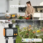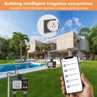 APP REMOTE CONTROL: Use the Smart Life APP to add the 2 Zone WiFi water timer to the WiFi-Hub (2.4 GHz WiFi only). Wifi sprinkler controller can be easily programmed from anywhere, anytime via an app (Android or iOS) to manage watering schedules (watering frequency, watering duration). TWO IRRIGATION MODES: The wifi hose timer has a timed irrigation mode and a spray mode. In irrigation mode, up to 5 watering procedures can be customized per outlet and the duration can be adjusted. The spray mode allows flexible adjustment of runtime and interval time. Both modes support weekly cycle frequencies. Help you fully save water bills. EXPANDABLE IRRIGATION SYSTEM: To cover more areas that need watering, it allows to add multiple WiFi sprinkler timers to the irrigation system. For the stability of the system, we recommend adding no more than 4 Smart water timers. Set up a smart garden watering system for you. You also can add family members to the app to share household irrigation management. RAIN DELAY&IRRIGATION RECORDING: This WiFi hose timer 2 Outlet has a rain delay function. After setting, the APP can automatically detect the local weather conditions, and the delay time can be set to 24, 48, or 72 hours. Have a separate watering log page that details the start time, duration and end time of each watering. 2 INDEPENDENT WATERING SYSTEMS: The Wifi water timer for garden hose has 2 outlets that work independently of each other, allowing for 2 separate watering schedule types for each zone. The sprinkler system does not produce pressure. This wifi water timer has a wide range of applications and is ideal for lawn, garden, patio, flower beds, pool irrigation and misting system irrigation. SMART VOICE CONTROL & WATERPROOF: Smart water timer for garden hose work with Alexa and Google. So you can control the WiFi timer with a simple voice commands to make your garden irrigation plan more convenient. The WiFi hose timer is made of high quality material, waterproof rating up to IP55, long service life. WATERPROOF AND DURABLE MANUAL MODE: This smart irrigation controller is made of high-quality materials with an IP55 waterproof rating, long service life. It also features a manual mode for more flexible watering schedules. Product description No Worries When Going Out - Smart Control Easily connect the wifi hub, water timer and app, The Sprinkler Timer can be programmed anytime anywhere via the application, No worry about your garden being thirsty when you go out. Smart Voice Control Wifi irrigation timer works with Alexa and Google. So you can control the wifi host timer with simple voice commands. Watering Record You can check the start time and duration of each watering via APP, and receive reminders from APP at the beginning and end of each watering. Remote control Upgrade 2-in-1 Smart Plug/Wifi-hub When it is a gateway, you need to associate it with your timer. You can control the switch anytime, anywhere, As long as your smartphone has internet access. Supporting a maximum current of l0A or l6A, it can be connected to most appliances and lamps in addition to timers. Voice control-Simply give a voice command to Alexa or Google Home to turn on/off switch when your hands are full. 1 Step 1 2 Step 2 3 Step 3 4 Step 4