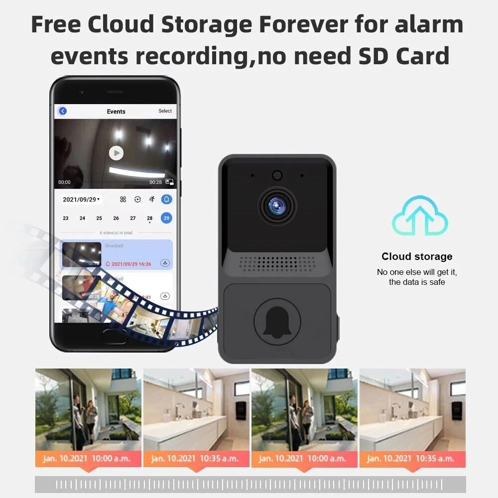 Description: 100% brand new and high-quality made. High definition video, display details at your front door, it is reliable and practical. Equipped with WiFi connection for two way intercoms between the doorbell and mobile phone. Built-in 800MAH lithium ion high-capacity battery. The doorbell can be controlled by APP. Equipped infrared night vision. Support voice change. 10 share members. Specification: Material: ABS Battery capacity: 800mA Power Input: 5V=2A Charging Time: 1.5 Hours Package Includes: 1x Doorbell 1x Indoor Ding-Dong Machine 1x Charging Cable 1x Set of Screws 1x User Manual