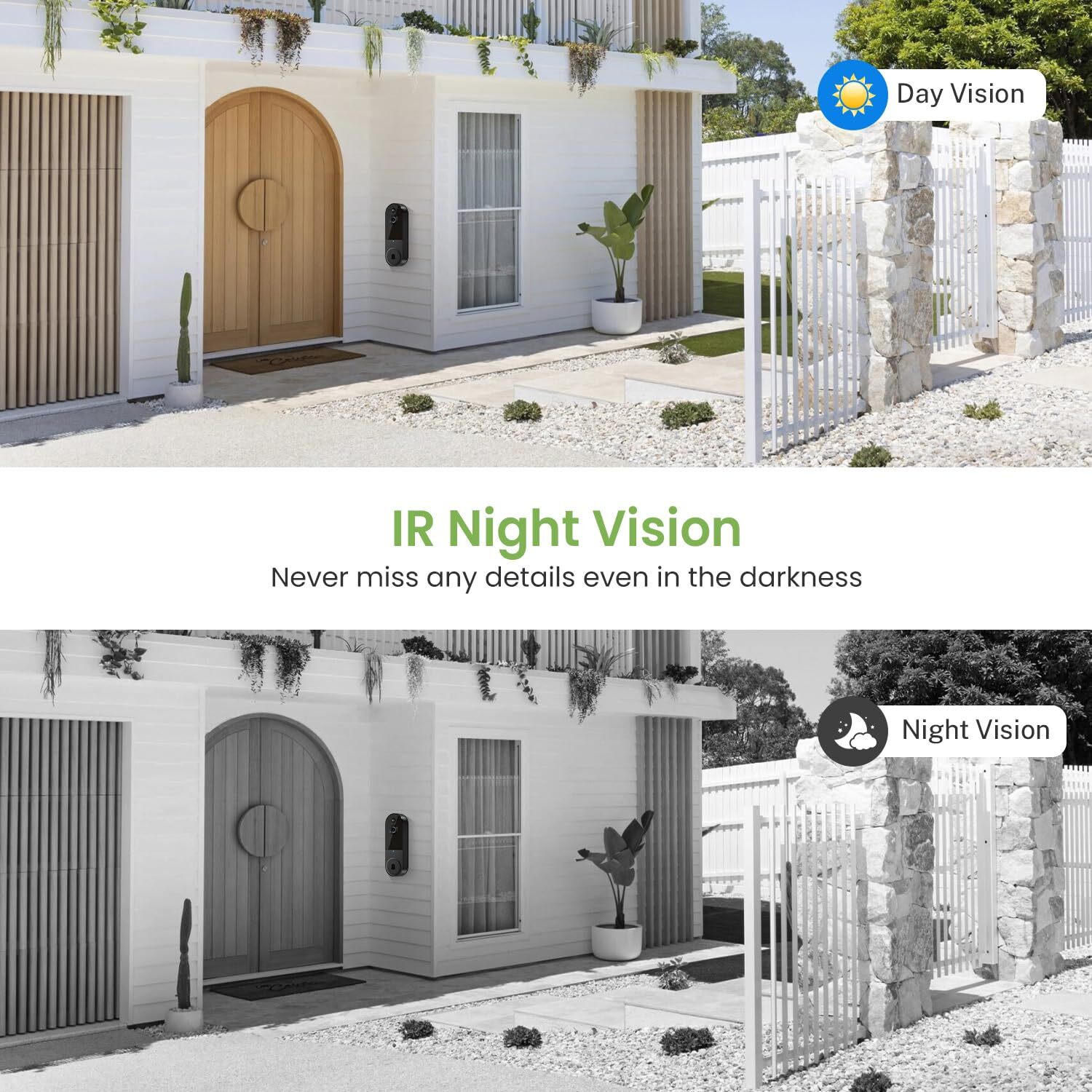 This smart video doorbell is a game-changer for home security! The crystal-clear night vision and instant motion alerts keep me informed, while the two-way audio lets me talk to visitors from anywhere. Super easy to set up with 2.4GHz Wi-Fi, and the included chime is a nice touch. Love the peace of mind it brings!