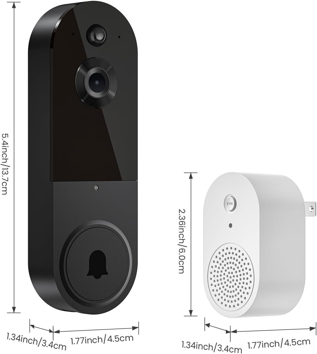 Smart Video doorbell Camera Wireless Wi-Fi Cam with Night Vision,Motion Detection, Cloud Storage, Two Way Audio, Chime Ringer Included(Black) Brand Hubposh Model Name Smart Wi-Fi Doorbell Camera Connectivity Technology Wireless Special Feature 2-Way Audio, Night Vision, Motion Sensor About this item Interactive Two-Way Talk: Connect with guests in real time from any location to promote seamless interactions. Optimized for 2.4GHz Wi-Fi: This doorbell camera is tailored for 2.4GHz Wi-Fi to ensure a stable and fast connection (5GHz Wi-Fi is not supported). Excellent night vision: Four infrared LEDs combined with smart infrared sensors enable continuous monitoring and produce clear video even in dim light conditions. Protected Cloud Storage Options: Get AES-128 encrypted cloud storage with an optional subscription (available separately). Dive into a 30-day trial for easy video recording, playback, and sharing. All-Weather Durability: With its IP65 rating, the doorbell is built to withstand all weather conditions, ensuring consistent performance throughout the seasons. Thorough Home Defense Set: Boasting a long-lasting battery and a free indoor sound alert. Enhanced AI Human-Machine Recognition: Activate AI features to distinguish humans from other moving entities, such as vehicles and animals. Product information Indoor/Outdoor Usage Outdoor, Indoor Compatible Devices Smartphone Power Source Battery Powered Connectivity Protocol Wi-Fi Controller Type iOS, Android Mounting Type Wall Mount Video Capture Resolution 1080p Color Black Number of Items 1 Included Components Doorbell Camera Wireless Communication Technology Wi-Fi Item dimensions L x W x H 1.77 x 1.34 x 5.4 inches Batteries Required? Yes Item Weight 0.38 Pounds