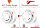 Tuya Zigbee/Wifi Smoke Detector Sensor Security Protection Fire Smoke Alarm Smart Home Safety System Works With Smart Life APP Note: When you choose to purchase zigbee smoke detector, you need to use it with tuya zigbee gateway. Feature: 1.Tuya Smart ZigBee/WiFi Smoke Detector is wonderful Safety & Security Guard for your home security. 2.Professional design, fast perception of fire supported that ensures high sensitivity of smoke and temperature, effectively reduce false positive rate and make the police more accurate. 3.App Push Notifications and Control:Compatible with Smart Life and Tuya App enables the timely discovery of danger of fire or smoke and real- time notifications to your smart phone. 4.Low power design and long battery life for this ZigBee new version with low voltage monitoring prompt function available. 5.Real-time Voice Alarm Prompt with Wide Range:This smart smoke detector owns the wide monitoring range of3m ahead,and it will intelligently and quickly issue more than 80dB alarm sound and push notification to you App automatically. Specifications: Product name: Zigbee/WiFi Smoke Detector Input voltage: DC3V LR03 Quiescent current: ≤ 15uA Alarm current: ≤160mA Battery: 2*1.5V AAA battery (Not include) Low-voltage notification: ≤2.4V Alarm sound pressure: 80db/1m Zigbee standard: IEEE802.15.4 WiFi standard: 802.11b/g/n Transmission Frequency: 2.4GHz Detection range: 20㎡ Installation method: Ceiling installation Working temperature: -10°C~+50°C Working humidity: ≤95%RH Material: ABS Size: 80x38mm/3.15x1.50in Package included: 1*Zigbee Smoke Detector 1*User Manual