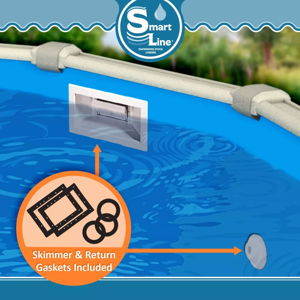 SmartLine® 12' x 54" Round Above Ground 25 Gauge Overlap Swimming Pool Liner - (Choose Pattern) If you're looking for a pool liner that offers durability, style, and ease of installation, look no further than our SmartLine® Pool Liners . Made from premium, UV-resistant material, our liners are designed to last for years and resist fading, so your pool will always look its best. Easy installation is a key feature of SmartLine® Pool Liners. Our liners are designed to be quick and simple to install, saving you time and hassle during the setup process. And, with a wide range of styles and designs to choose from, you're sure to find the perfect liner for your pool.Be sure to check the measurements of your swimming pool to assure the correct size is purchased. Pool height is determined by measuring the outside wall from the ground to underneath the top rail. Exclusive Offer! FREE Universal Gasket Kit w/Purchase!! Pool Size: 12' x 54" Shape: Round Style: Overlap design Pattern: choose by using the drop-down window at top of page Material: 100% Virgin Vinyl Features of the Liner: High-temperature curing, computer-controlled process ensures that 100% of the material is "Vulcanized" to the highest possible tolerances Vacuum Sealed, high-volume air pumps combined with electronic air filters remove all impurities before bonding High-pressure heat bonding, computer balanced combination of high pressure and exact temperatures ensures a void-free permanent bond The most technically advanced radio frequency vinyl welding reduces the chance of cold spots in the seaming process Reduced wrinkling! Hand-folded flat, to reduce wrinkles, unlike automated packers that twist and force the liner into the box which can cause permanent creasing. Most Common Types of Liners: Overlap: This type is the most common and simply folds over the corrugated metal wall and drapes down on the outside of the wall. The liner is held in place by plastic coping strips. You may wish to replace these if your old ones are brittle and dry. The best way to make sure you are getting the right liner is to email us with any questions. Limited Warranty: 25 Gauge = 25 Years Note: Once the liner has been taken out of the box, the liner is non-returnable unless the liner is defective, received damaged, or miscut by the manufacturer. Please make sure you measure your swimming pool twice before purchasing. Lastly, none of our liners will fit Intex, Coleman, Bestway, or any soft-sided swimming pool.