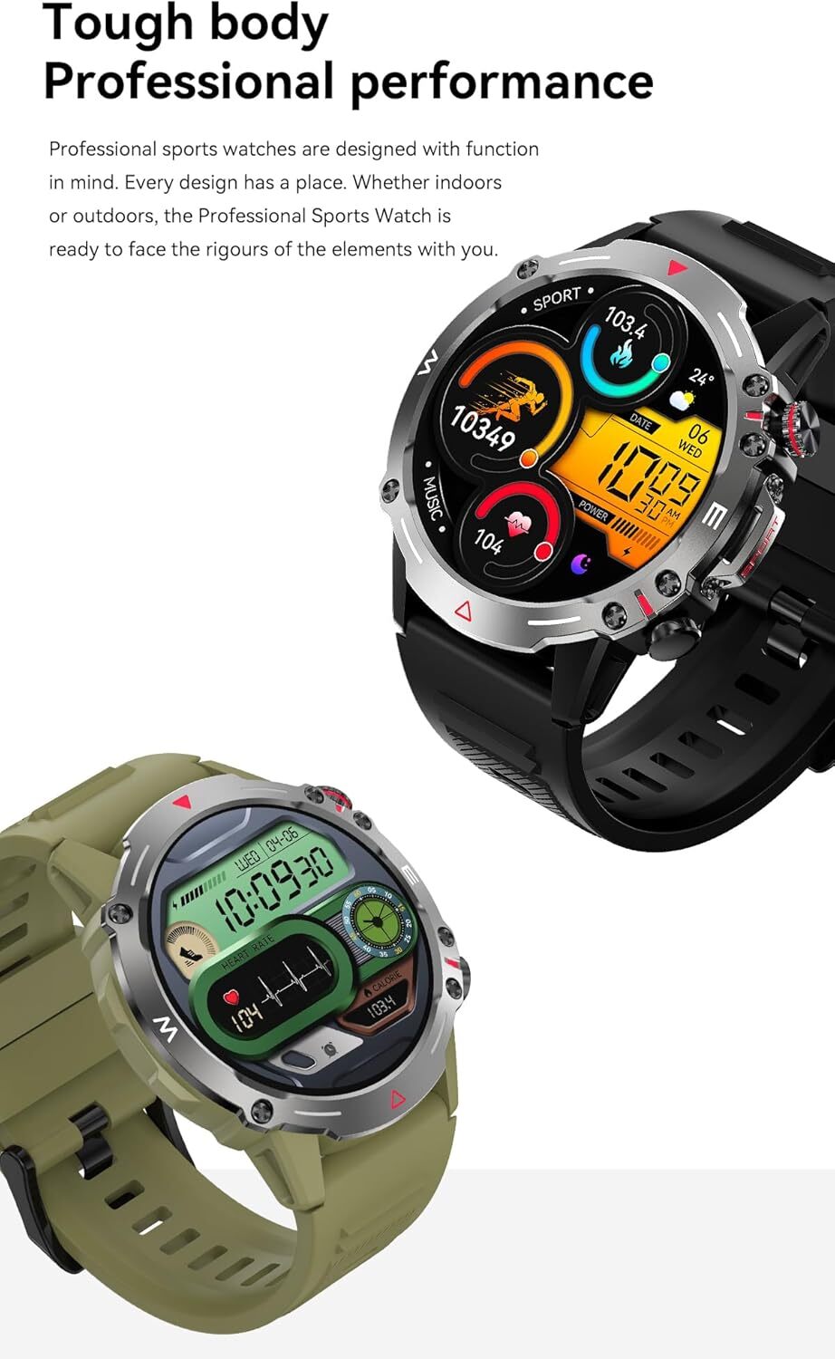 Smartwatch with AMOLED Display & Bluetooth Calling Experience a premium wearable with a vibrant 1.43" AMOLED full-touch screen (466×466), delivering ultra-clear visuals anytime. Key Features: Bluetooth Calling & Voice Control: Make and receive calls directly on your wrist with built-in voice assistant support. Comprehensive Health Tracking: 24/7 monitoring of heart rate, blood oxygen, blood pressure, sleep, steps, calories, and sedentary alerts. Smart Lifestyle Tools: NFC for offline payments, weather updates, music control, message notifications (SMS, WhatsApp, etc.), alarms, and Find My Phone. Customization: Access 100+ watch faces and upload your own photos for a personalized look. Durability & Battery: IP68 waterproof rating for daily wear and workouts. Battery lasts 5-7 days, with standby up to 30 days. Fast magnetic USB charging in ~2 hours. Compatibility: Works seamlessly with Android and iPhone devices.