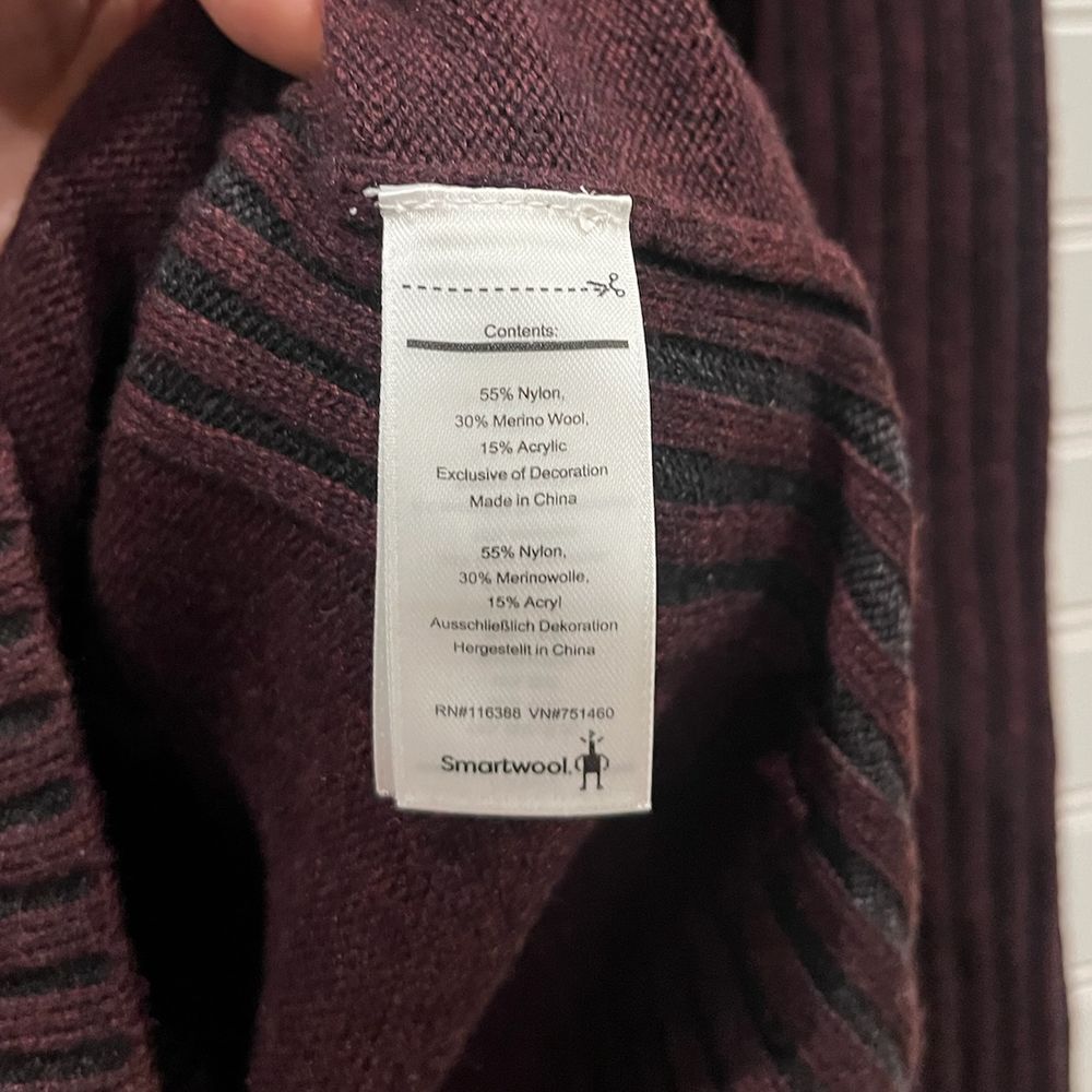 Elevate your cold-weather wardrobe with this luxurious burgundy sweater from Smartwool. Features a classic ribbed design on the sleeves and hem, crafted from a premium merino wool blend for ultimate comfort and warmth. Perfect for outdoor adventures, casual office days, or cozy weekend brunches. The timeless design pairs beautifully with jeans, skirts, or layered over dresses for versatile styling options. Style: Pullover Color: Purple Department: Women Type: Sweater Material: Wool Blend, Nylon, Merino Wool, Acrylic Neckline: Crew Neck Sleeve Length: Long Sleeve Pattern: Solid Features: Ribbed Trim, Moisture Wicking, Breathable, Stretch, Thermal Sleeve Type: Raglan Sleeve Fabric Type: Knit Accents: Logo Keywords: merino wool sweater, burgundy pullover, ribbed knit, wool blend, smartwool, winter sweater, cozy sweater, burgundy jumper, warm knitwear, casual sweater