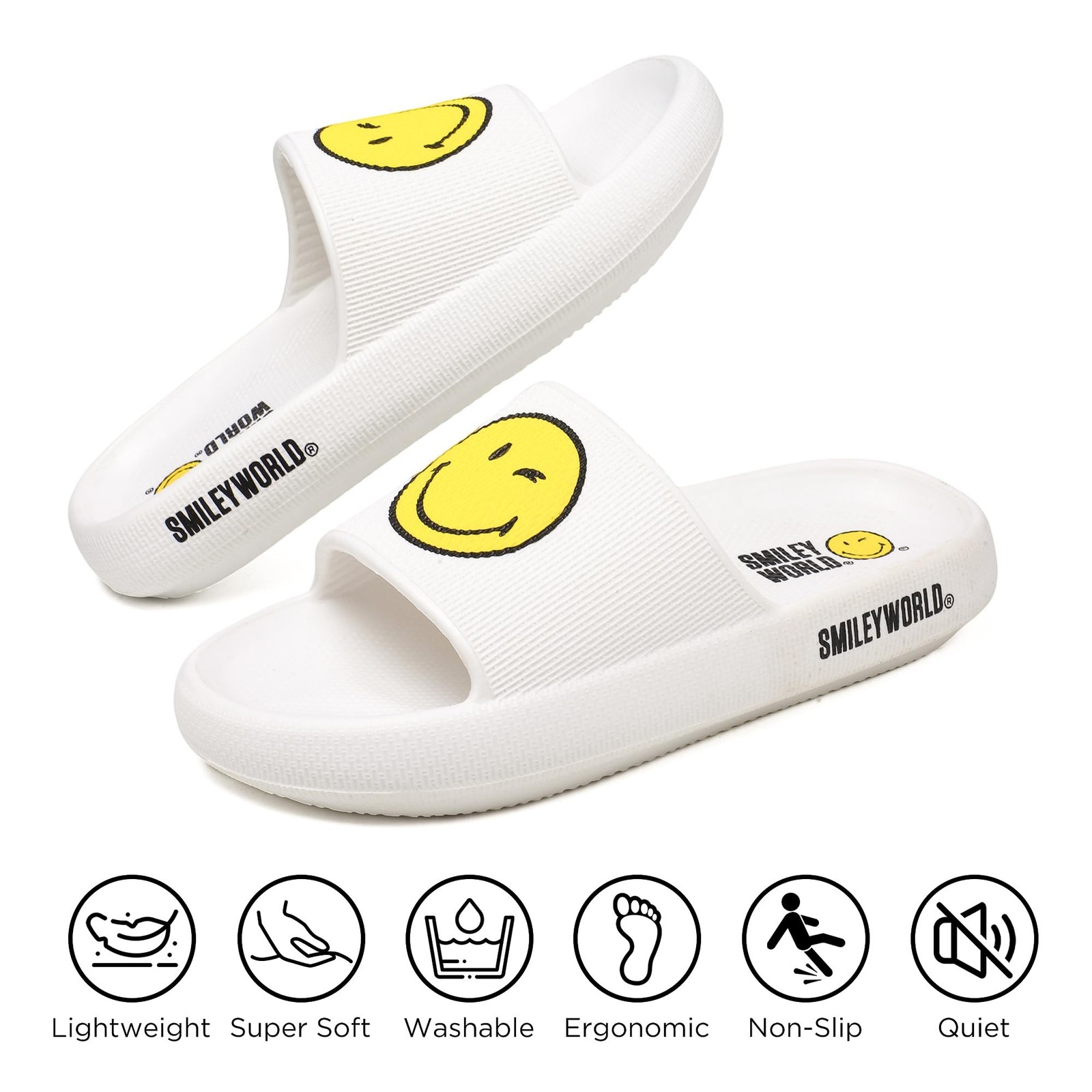 SmileyWorld Cloud Slides for Women and Men Smile Face Pillow Slippers with Arch Support Non Slip Quick Drying Shower Shoes EVA Flat Sandals Product Details Color: White Size: 11 Women/9 Men Brand: ZHPTO MPN: Does not apply UPC: Does not apply EAN: Does not apply Department : womens Date First Available : July 18, 2025 Best Sellers Rank: #563,543 in Clothing, Shoes & Jewelry (See Top 100 in Clothing, Shoes & Jewelry) #993 in Men's Sandals #1,159 in Women's Slide Sandals #993 in Men's Sandals #1,159 in Women's Slide Sandals Customer Reviews: 5.0 5.0 out of 5 stars 14 ratings