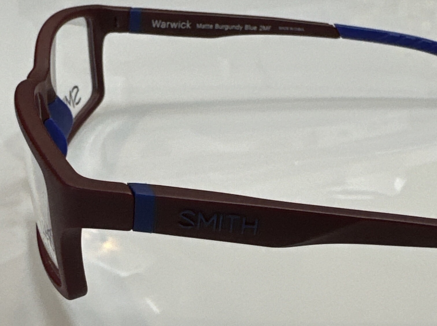 Brand: Smith Optics Model: Warwick Size: 53-17-140 Color: Burgundy/Blue Material: Plastic (Cold Glaze Only) Don't miss your opportunity to get this New, Stylish frame!