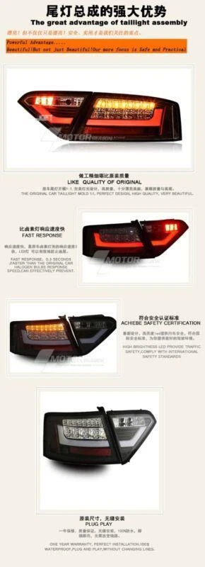 Store Categories Store Categories Other Smoke All LED For Audi A5 Tail Lights 2008-2016 Red LED Rear Lamps Assembly Product Description Condition: 100% brand new Installation: Easy installation,please note that the installtion needs to do some wiring, after payment you can feel free to contact us and we will provide a video/picture of the wiring to you,thanks. 2 Lelf light and 2 Right light include : Product: LED Taillights Quantity: 1 Set Full Pieces size: Original size 1-1 Function: Rear Trunk Lamp DRL+Turn Signal+Reverse+Fog lamps+Brake parking light use: plug and play Warranty: 12 months Color: Smoke Shipping: Free shipping(default: Fast shipping-EMS, Except For Some Countries) All required harness (For Plug and Play installation) Includes 1 X pair of Tail Lights Notes Compatible with: 100% Brand New Professional Installation is Highly Recommended Welcome to send us message for more information What are you waiting for,come and buy!! ! IMPORTANT NOTE: eBays compatability table function is not always correct. Please ensure these light will suitable for your vehicle before you purchase. Copyright © 2023 Dianxiaomi