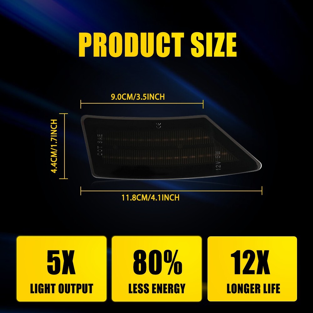These smoked lens amber LED side marker lights are a perfect upgrade for the 2019-2022 Ford Ranger! The 1:1 OEM fitment ensures a seamless install, and the bright amber LEDs provide excellent visibility while adding a sleek, modern look. The IP67 waterproof rating and durable construction mean they’ll last for years, even in harsh conditions. Super easy to install and a huge improvement over the stock lights—highly recommend!