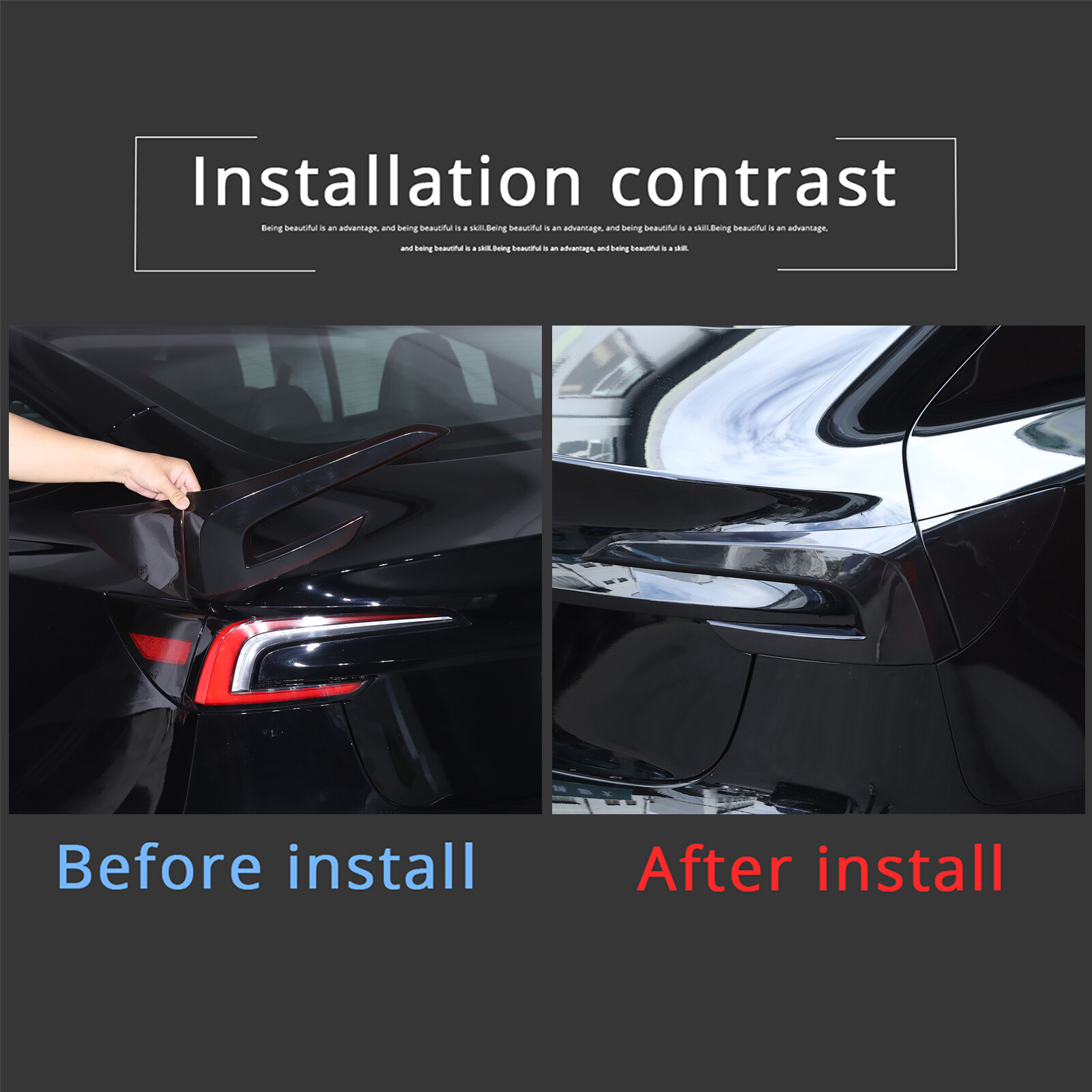 Fit For Tesla Model 3 2023-2024 Item Description: Condition: 100% Brand New Material: ABS Item : 4 Pcs/Set Color: Smoke Black Product features:Durable , Easy to install,Adhesive tape is attached at the back Please compare the install position of your car with our picture before buying it Method Of Installation : Easy to install,Please keep the surface clean and dry, no sand/dust Tips: -Find the exact location where to set it before removing the tape ; -Clean the installation areas surface,no sand/dust; -Remove the tape and place the product at the exact position,press it to make a good adhesive; -No wash and move within 48 hours; -Better to use a lighter or a hair dryer to provide a slight heat for the 3M tape after removing,it will improve its stickiness - NOTE - In case it fall off for some car models, just add some tape and put the cover back on,then they will work perfectly Shipping Policy - All items are available for shipping within 1-3 business days after receiving the payment - Please be aware that weekends are not business days - We ship to your eBay or Paypal address.Please make sure your eBay and Paypal address is correct before you pay, it can not be changed once the order is completed Return - If any item is defective upon receipt or do not work, please contact us for the return address, return is accepted within 30 days after the buyer receiving the item - Returned item has to be in its original condition. Buyer is responsible for return shipping costs - After receiving the return we will make a replacement depends on our available stock, if not available, a refund will be issued Feedback Dear customers and friend, we appreciate your business, if you are satisfied with our service, please leave us a positive feedback and rate the details of the transaction (Detailed Seller Ratings) with 5 stars. Your recognition will make us more confident to develop business and serve you better. Or If you have any question, please email us first About Us Here you will get the best product & customer service. Our shop specializes in all kinds of Car Parts decorations, trim For BMW, Benz,Land rover,Toyota tacoma ,subaru toyota,toyota Supra Thank for your bid! On Nov 20, 2024 at 00:04:25 PST, seller added the following information: