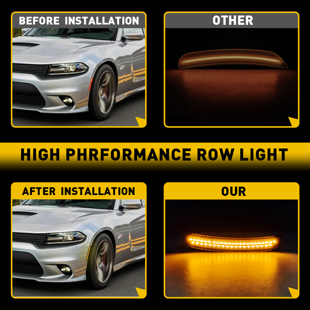 Absolutely love these smoked LED side markers! They fit my Charger like OEM, giving it a sleek, aggressive look. The amber LEDs are bright and eye-catching, adding great visibility. Installation was a breeze—plug-and-play in minutes. The IP67 waterproof rating gives me peace of mind in any weather. Durable ABS housing feels premium, and after months of use, no flickering or issues. Perfect upgrade for any Dodge Charger owner—looks stock but way better. Worth every penny!
