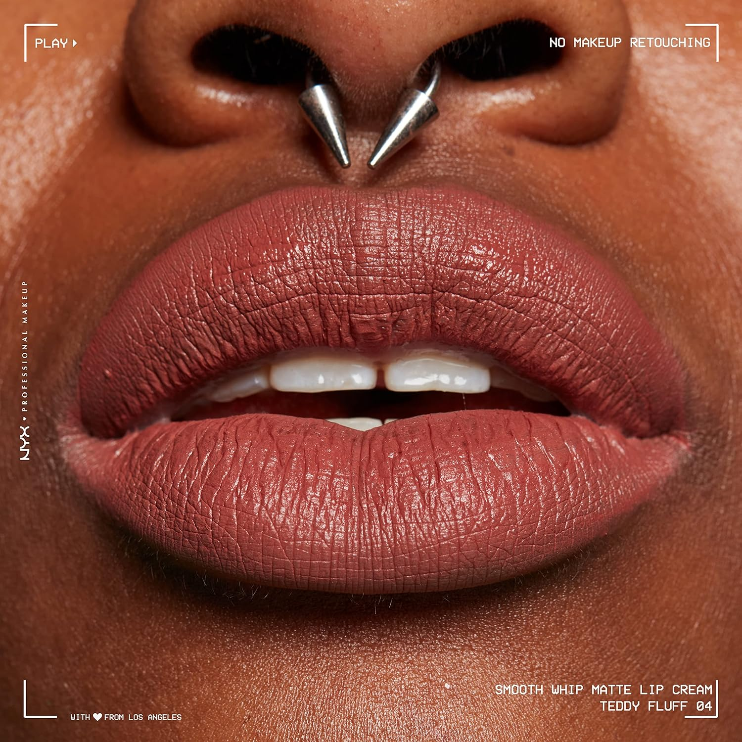 Smooth Whip Matte Lip Cream, Long Lasting, Moisturizing, Vegan Liquid Lipstick - Teddy Fluff (Midtone Pinky Brown) Smooth Matte Lip Cream: Introducing our new ultra-sensorial lip smoothing obsession. For a real life smooth effect with lip smacking color payoff. Get ultra vibrant matte finish lip make up shades whipped with moisturizing shea and cocoa butters Say Goodbye to Texture and Lines: Get smooth and nourished lips with this long lasting vegan liquid lipstick. Designed with a scoop matte lipstick applicator that hugs your lips for the perfect application. Get textureless lip color in just one swipe Lip Products for the Perfect Pout: Doll your lips in creamy, long lasting perfection; Try our complete line of lip makeup including liquid lipstick, lip gloss, lip cream, lip liner and butter gloss Cruelty Free Cosmetics: We believe animals belong in our arms, not in a lab; All of our makeup is certified and acknowledged by PETA as a cruelty free brand; We don't test any of our products on animals Discover NYX Professional Makeup: Try all of our professional makeup products today from eyeshadow, eyeliner, and false lashes to liquid lipstick, lip gloss, primer, concealer, setting sprays and eyebrow makeup Introducing Smooth Whip Matte Lip Cream, never before seen vibrant lip smoothers. Giving all day smooth sensation while nourishing your lips for all day comfortable wear. Get your smooth on with 24 vibrant lip smacking smooth shades in a comfortable matte finish that deliver maximum color payoff in just one swipe. Say goodbye to texture and lines with Smooth Whip Matte Lip Cream, which gives a real life smoothing filter for your lips. You're going to want to whip it real good. Try all of our professional makeup and beauty products today, from eyeshadow, eyeliner, mascara and false lashes to lipstick, foundation, primer, blush, bronzer, brushes and more. Dimensions 0.67 inches x 0.67 inches x 3.39 inches. Weight: 0.71 oz Specifications Item model number CSMC1525-31074NVEG Color 04 Teddy Fluff Item Form Liquid Product Dimensions 0.67 x 0.67 x 3.39 inches; 0.71 ounces Skin Type All Finish Type Matte Size 0.13 Fl Oz (Pack of 1) Shipping: Shipped from the USA. Fast delivery within 2–3 days. Payment: PayPal, credit card, bank transfer. Returns: 30-day free return – we cover the shipping cost. Quality: Made in Europe/USA/China. No customs fees. VAT invoice on request. Feedback: You’ll automatically receive positive feedback after payment.