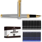 Smooth Writing Fountain Pen with Fine Nib - Includes 24 Ink Cartridges ‹ › ‹ › ‹ › ‹ › ‹ › ‹ › ‹ › ‹ › ‹ › ‹ › ‹ › Smooth Writing Fountain Pen with Fine Nib -Includes 24 Ink Cartridges Features: Slim, elegant design with perfect weight/comfort ratio for a relaxed and graceful writing experience. Ergocomfort technology for hours of uninterrupted writing without strain to your wrist or hand. Hooded, fine nib produces a 0.5 mm smooth and elegant line. No more skips or blotches. Beautiful slim design for a statement of sophistication. Designed to accommodate left-handed writers. 100% satisfaction guarantee - no-hassle refund if not delighted. Benefits: Relaxed and graceful writing experience Precision and sophistication in your writing No more skips or blotches Make a statement of sophistication Confidence to express your own style Refined writing experience Risk-free purchase with 100% satisfaction guarantee Exceptional customer service Why choose our Smooth Writing Fountain Pen? Experience the perfect balance of elegance and comfort with our Smooth Writing Fountain Pen. Designed with ergocomfort technology, this pen allows you to enjoy hours of uninterrupted writing without any strain to your wrist or hand. The hooded, fine nib produces a smooth and elegant line, ensuring precision and sophistication in your writing. No more skips or blotches to ruin your work. But it's not just about functionality - our fountain pen also boasts a beautiful slim design that exudes sophistication. Twist off the cap and let the world see your refined taste. As a family-run business, we prioritize our customers and guarantee 5-star service. If you're not 100% satisfied, we'll buy the pen back from you with no questions asked. Don't settle for ordinary pens - choose the Smooth Writing Fountain Pen for a truly exceptional writing experience. Order yours today! Shipping Free & Fast Shipping - We offer free shipping to most of the USA with a normal delivery time of 3-7 days. However, due to the current situation, additional delivery time (up to 3 weeks) may be required for some items. Alternative Carriers - We may use alternative carriers (e.g. USPS, FedEx, UPS, etc.) to ensure your package arrives safely and on time. Due to the use of multiple carriers, we are unable to provide a tracking number automatically. Handling Time - Orders are processed and shipped within 1-2 business days of receiving cleared payment. Shipping Restrictions - Shipping to Alaska, Hawaii, Puerto Rico, Guam, and other US territories may incur shipping charges or delivery restrictions. Please contact us before ordering, or your order can be refunded/cancelled. State Restrictions - There may be restrictions based on your state of purchase. For example, certain items may not be shipped to California due to state regulations. Contact for Tracking Updates - If you require tracking updates or have any concerns about the delivery of your order, please feel free to contact us, and we will be happy to assist you. Return 30-Day Hassle-Free Returns - We want you to be completely satisfied with your purchase. If you are not, you can return the item within 30 days of receiving it for a full refund or exchange. Easy Return Process - To start a return, simply contact us and we will provide you with a prepaid return shipping label and detailed instructions. Restocking Fee - There are no restocking fees for returns. However, the buyer is responsible for return shipping costs if the return is not due to a seller's error. Refund Processing Time - Refunds will be processed within 5 business days of receiving the returned item in its original condition. Payment We accept all major credit cards, PayPal, and Apple Pay for your convenience. Your payment information is secure and encrypted to ensure a safe and seamless transaction. Please complete your payment within 3 days of purchase to avoid any delays in shipping. Feedback Your feedback is extremely important to us. We strive to provide the best products and customer service possible. If you are satisfied with your purchase, please take a moment to leave us a positive review. If you have any concerns or issues with your order, please contact us before leaving negative feedback. We are committed to resolving any problems and ensuring your satisfaction. Contact Us If you have any questions or concerns, please feel free to reach out to our customer support team. You can contact us through the eBay messaging system. We are available Monday to Friday, 9:00 am to 5:00 pm EST, and we will do our best to respond to your inquiry within 24 hours. Thank you for supporting our small family business!