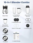 【Powerful Smoothie Blender】Peak Power 900W Smoothie Blender for Shakes with upgraded full copper turbocharged motor pulse technology, 25000RPW High Speed, faster and stronger, but just as simple to use. Load it up with dense whole foods like nuts, seeds, hard fruits, then push, twist and blend your way to a healthier lifestyle. 【Multi-Function Blenders】Your personal blender comes with a stainless steel 6-blades, make it easy to blend various hardness of ingredients, even crushing ice. Great for blending smoothies, juices, milkshakes, sauces, jams, baby food. A powerful string flat blades use cyclonic action to break down tough ingredients, great for grinding like coffee beans, spices. 【Safety First】Your safety is our top priority, Blender for smoothies only works when the blender cup is properly locked into the base. cooling fan on the bottom of the blender for quick heat dissipation. 4 Non-slip silicon pads can keep balance when the smoothies blender is working. 【15-in-1 Countertop Blender and Grinder Combo】(1) Peak Power 900W motor base, (1) 6--blade cross, (1) 2-blade flat, (1) 24 oz. portable Cup, (2) 17 oz. Middle Cup, (1) 10 oz. grinding Cup, (1) to-go lid, (2) lip ring, (2) resealable Lids, (2) Cup Sealing Ring, (1) Recipe. 【Cleaning Friendly】Cleaning is a breeze – just add soap and warm water, and the blender will start its self after properly locked into the base. In addition, the smoothie maker can be easily cleaned in a dishwasher, except for the motor part (The Main Body). Product description 1 Strawberry Smoothie 2 Kale Smoothies 3 Baby Food 4 Fruit and Vegetable Juice 5 Grinding Coffee Beans 15-in-1 Countertop and Personal Blender Combo Upgraded 6 -Leaf Cross Blade Stainless Steel Cutter Blade with High Quality Silicone Sealing Gasket. Crushing ice cubes, making smoothies, fruit and vegetable juice, protein shakes, milkshakes, pureed food for babies and adults. Durable 2-Leaf Flat blade Stainless Steel Cutter Blade with High Quality Silicone Sealing Gasket. Grinding coffee, beans, spices, and nuts. Let's get creative together in the kitchen! 25,000 RPM SPEED With Peak Power 900W Motors provides 25,000 rpm speed, pulverizes fruit and vegetables well. Detachable Blade Fully Cleaning, More Healthier. Self Cleaning Clean your portable juicer blender easily by filingl the jar with water, add a drop of soap. Dishwasher Safe The blender cups and to-go lids are dishwasher safe. 1 Power Turbocharged Motor 2 Detachable Blade 3 Self Cleaning 4 Dishwasher Safe Breakfast Ganiza blender makes it a breeze to extract healthy shakes and smoothies, prepare mornig health food, and even make jams – all with our table blender. Family Health Ideal for family gatherings, Our blender jar is perfect for preparing large batches of frozen drinks and smoothies. Perfect To-Go Cup You will be able to blend and drink from the same cup, and also take it with you thanks to its anti-leaking lids. Friend Gathering Ganiza Blender For Shakes And Smoothies can crush ice for frozen drinks, create a puree, grind nuts, bring happy to friend gathering. What A Nice Choice To Your Family & Friend! 1 Easy to use 2 Nice Gift
