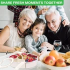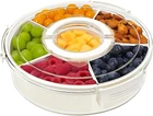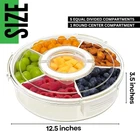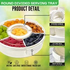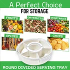 Snack Box Container, Divided Serving Tray with Lid, 6 Compartments Clear Product Details Brand: TRU TRADEHUB Color: Clear Material: Plastic Product Dimensions: 12"L x 12"W x 3.1"H Shape: Round INTRODUCING OUR VERSATILE TRAY! This All-In-One Solution Is Perfect For Many Uses, Whether You're Organizing Condiment Containers, Veggie Tray, Packing Snack Boxes For Kids, or Setting up a Taco Bar. GREAT SIZE, It Features 12.59x12.59x3.15 Inches, it is a Large Bento Box Perfect as a Snack Containers. Great To Organize Fruits, Veggies, Nuts, And More. An Option For Charcuterie Box Or Snackle Box Our Tray Features 6 Individual Removable Compartments, Once Removed, It Becomes More Functional, Perfect as a Taco Bar Serving Set, Party Platter, Snack Containers For Adults, Or Lake Day Essentials. Traveling? It is Portable with handles is perfect as an adult lunchable containers, picnic accessory, snack spinner, toddler snack container, snack organizer, veggie tray, or tackle box for snacks. EASY TO CLEAN and Built For Convenience And Durability, This Charcuterie Board With Lid Doubles as a Travel Snack Container and Perfect as a beach essentials. Do Not Use On Microwave Or Dishwasher