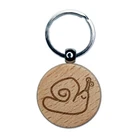 Snail Doodle Engraved Wood Round Keychain Tag Charm