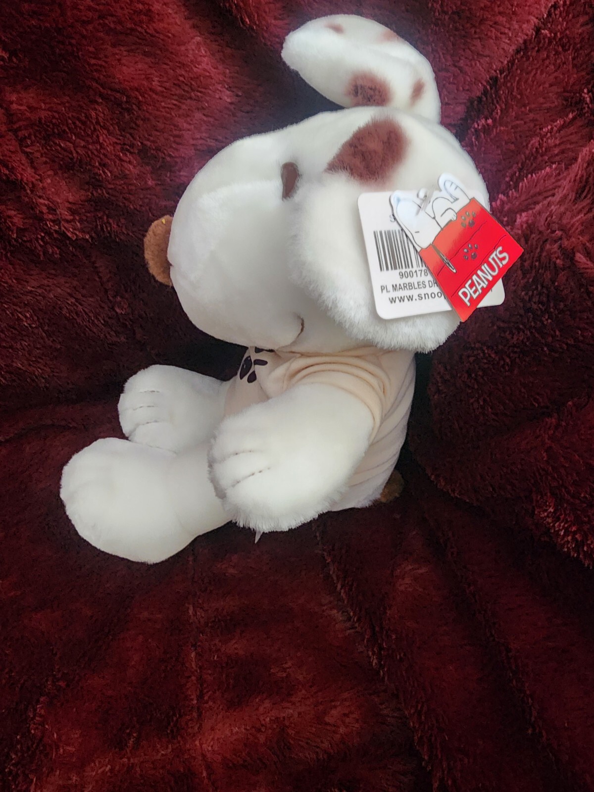 This is a 10" plush figure of Snoopy from the Peanuts Gang, produced by Cedar Fair in 2011. The stuffed animal is designed to be cuddly and soft, making it a perfect toy for children or fans of the Peanuts comic strip. The color of the plush figure is brown and white, resembling the iconic appearance of Snoopy the dog. This item would be a great addition to any Peanuts Gang collection or as a fun toy for kids who love this classic cartoon character.