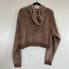 Peanuts Embroidered Velour Crop Tan Hoodie Fuzzy Snoopy Charlie Brown Size XL Tan Bust: 23 inches flat measure pit to pit Length: 19 inches shoulder seam to bottom edge hem Pre-owned in excellent condition without rips, holes, snags, stains, discoloration, or defects. See photos. Ask questions. Thank you!