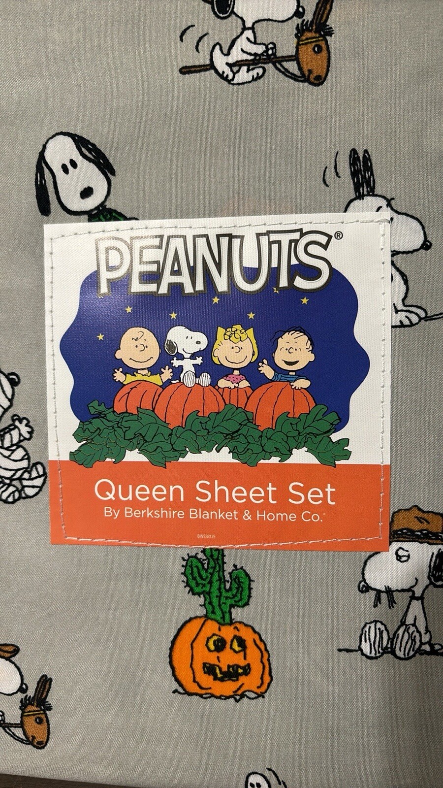 NEW PEANUTS SNOOPY COWBOY STICK PONY CACTUS JACK O LANTERN HALLOWEEN QUEEN SHEETS GRAY 100% POLYESTER SOOOO CUTE! SNOOPY IN A MUMMY COSTUME SNOOPY WITH A MUSTACHE SNOOPY RIDING A STICK PONY CACTUS JACK O LANTERNS GHOSTS