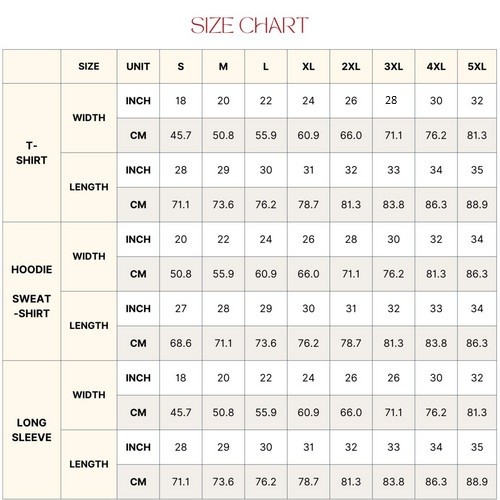 If you are ordering a t-shirt, hoodie, or sweatshirt, please message me or note the color and size you require. We have sizes available from S-5XL and prices are the same for all sizes If the product you purchased is a name or number customized product, please note in the Personalization box or send us a message. To ensure the fastest delivery time, customers in each region will receive their shipments from the warehouse located in that region Delivery Time Customers in the USA, Canada: Shipped from the USA warehouse, delivery within approximately 5-9 business days. Customers in the UK and EU: Shipped from the EU warehouse or UK warehouse, delivery within approximately 4-8 business days. Customers in Australia: Shipped from the Australia warehouse, delivery within approximately 4-8 business days. If you want to buy a Sweatshirt, Hoodie or Tank Top but there are no options on the product listed, please message us for assistance. A. ORDER PLACEMENT INSTRUCTIONS Please review all the provided photos. Select your preferred shirt size. Indicate your color preference. Click the "ADD TO CART" button. You can return to add more items for your family or proceed to checkout. If you have added any additional notes, continue by choosing "Proceed to checkout." Your selected shirt will be prepared for shipping. B. PRODUCT DETAILS A comprehensive size guide can be found among the item photos. The materials used may vary slightly depending on the chosen product type, such as a t-shirt, sweatshirt, or hoodie. Irrespective of the product type, our primary focus remains on comfort and quality. Our t-shirts are carefully crafted from 100% ring-spun cotton, except for the Sport Grey version, which combines 90% ring-spun cotton and 10% polyester. The Dark Heather option blends 65% polyester and 35% cotton. All our products are lightweight, with a fabric weight of 4.5 oz/y² (153 g/m²). We have pre-shrunk them to minimize potential shrinking after washing. To enhance durability, we have included shoulder-to-shoulder taping. Additionally, the quarter-turn design prevents creasing at the center, ensuring a tidy appearance. Feel free to explore our store for the perfect gift suitable for any occasion. FAQs: I JUST PLACED AN ORDER, WHEN WILL IT SHIP? It is noted that your order processing time can be affected if the initial information provided to us is insufficient or incorrect such as inaccurate or incomplete payment; incorrect address information and insufficient product measurements. We seek your understanding and support if it is the case. FEEDBACK Please feel free to contact us if you have any questions about the merchandise. If you are satisfied with the item, please leave a positive feedback and full-star rating for us! Your satisfaction is the most important thing to us. Please contact us first if you could not leave a positive feedback! Just let us know what the problem is, and we are happy to help. CONTACT US If you have any questions or suggestions, please email to us immediately. Your messages will be answered within 24 -48 hours. We shall try our best to solve your problem to your satisfaction. Have A Nice Day! Thank you On May 12, 2024 at 19:12:27 PDT, seller added the following information: On May 13, 2024 at 20:05:16 PDT, seller added the following information: On Jun 22, 2024 at 07:23:36 PDT, seller added the following information: On Aug 19, 2024 at 22:34:54 PDT, seller added the following information: On Jun 30, 2025 at 01:01:48 PDT, seller added the following information: