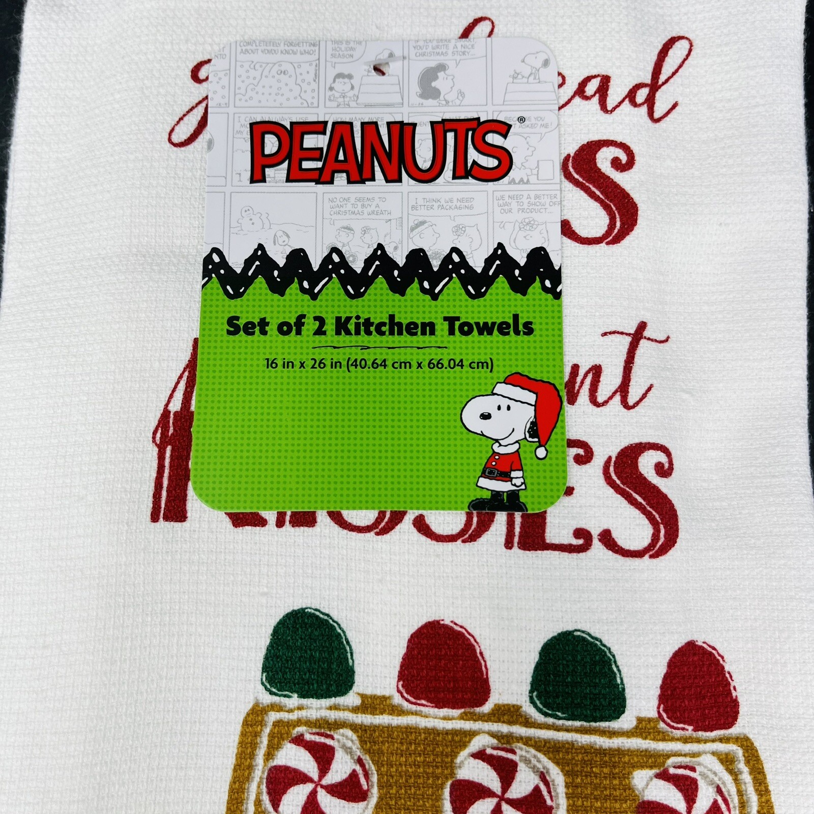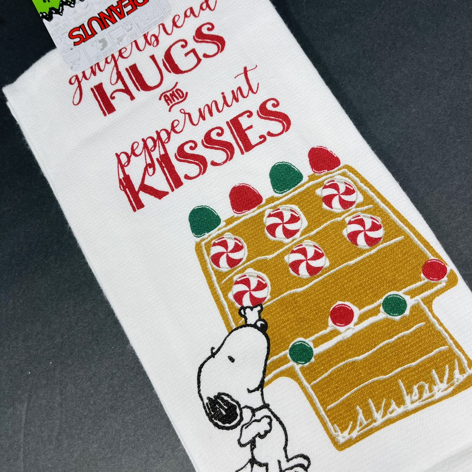 Snoopy Gingerbread Christmas Kitchen Towels 2-Pack XO Peppermint